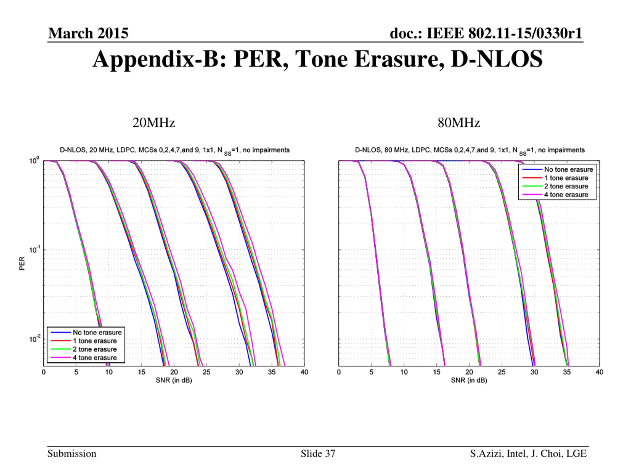 March 2015 doc.: IEEE 802.11-15/0330r1 Appendix-B: PER, Tone Erasure, D-NLOS 20MHz 80MHz Submission Slide 37 S.Azizi, Intel, J. Choi, LGE