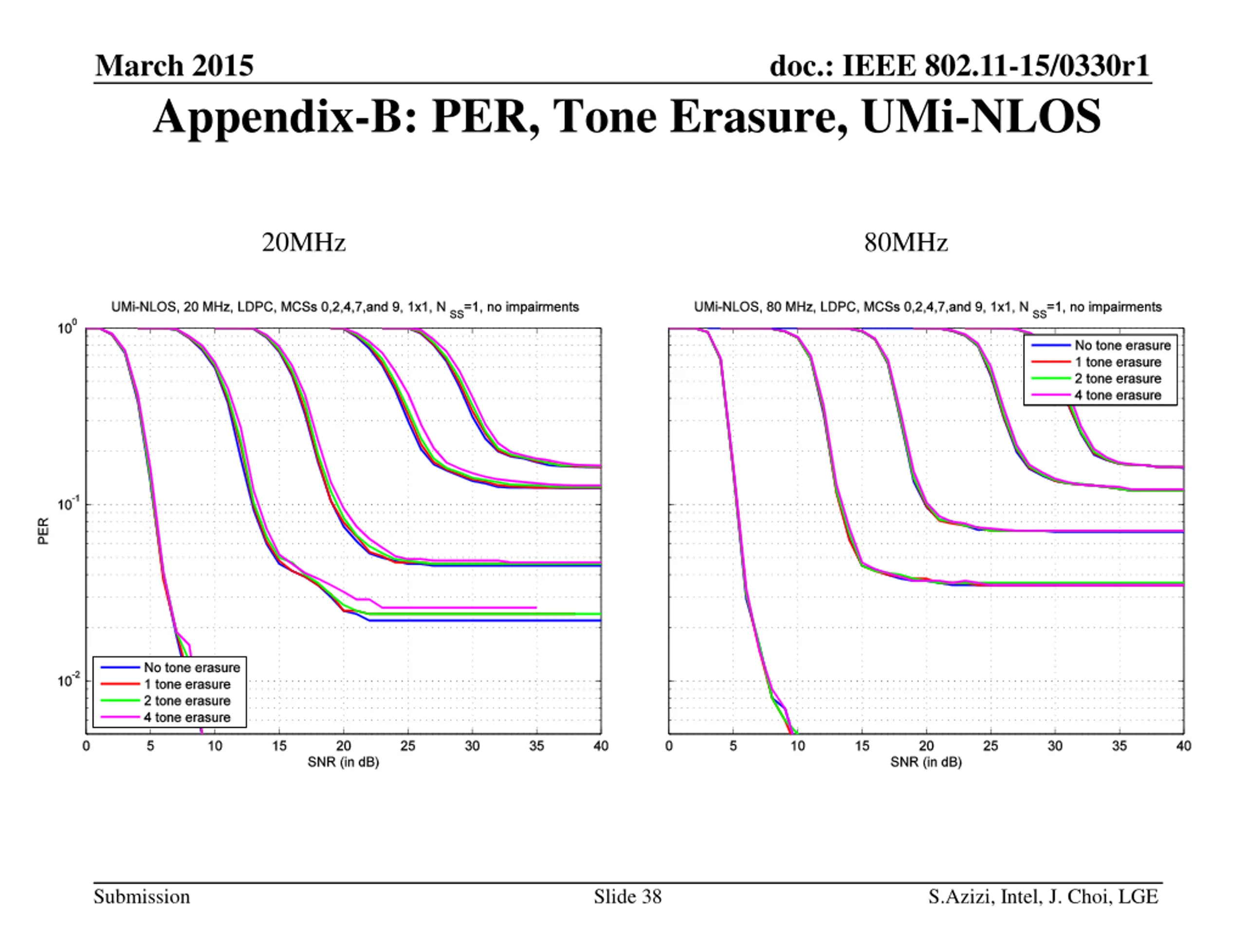 March 2015 doc.: IEEE 802.11-15/0330r1 Appendix-B: PER, Tone Erasure, UMi-NLOS 20MHz 80MHz Submission Slide 38 S.Azizi, Intel, J. Choi, LGE