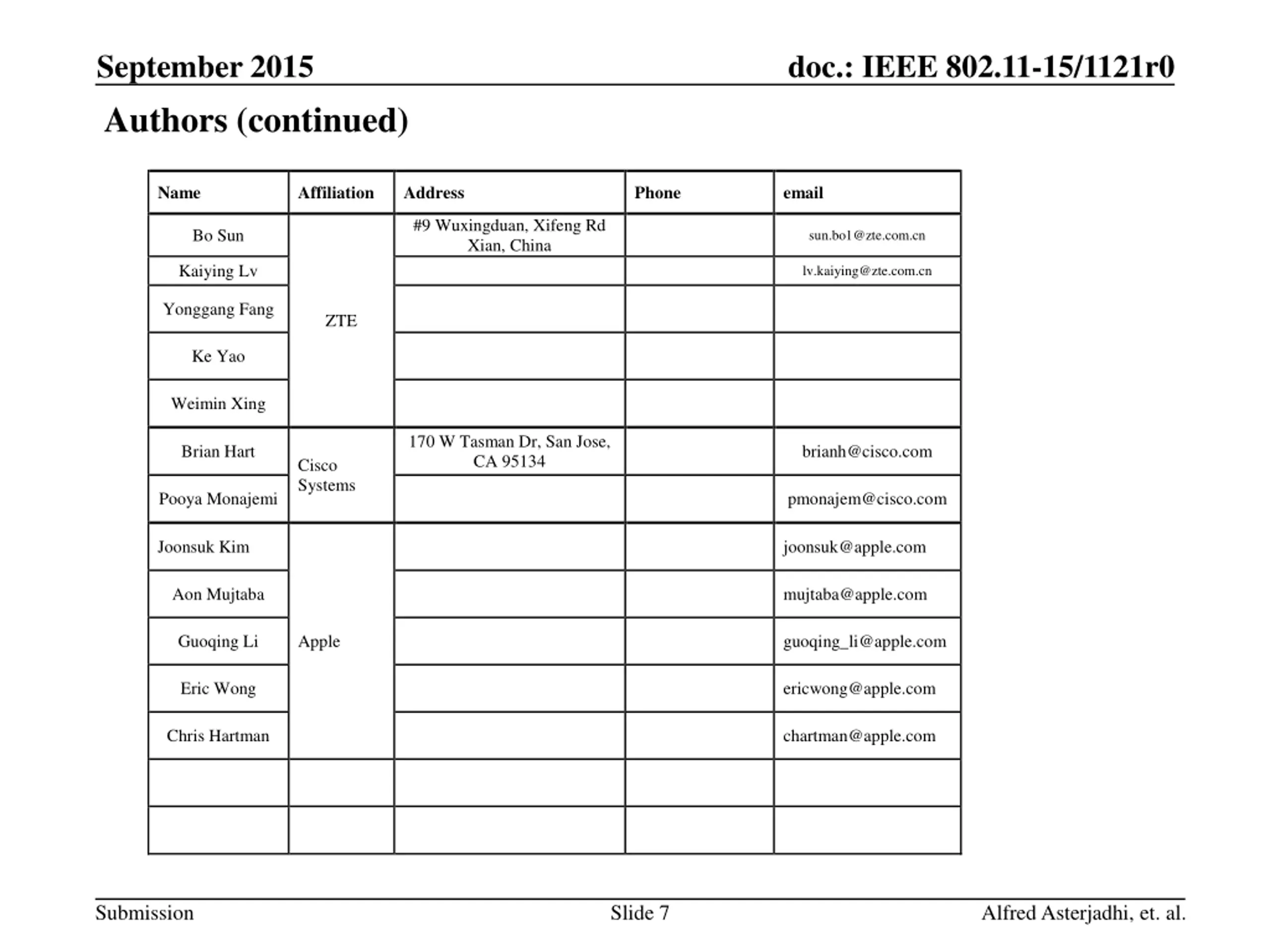 IEEE 802.11-15/1121r0 Authors' Collaboration in September 2015