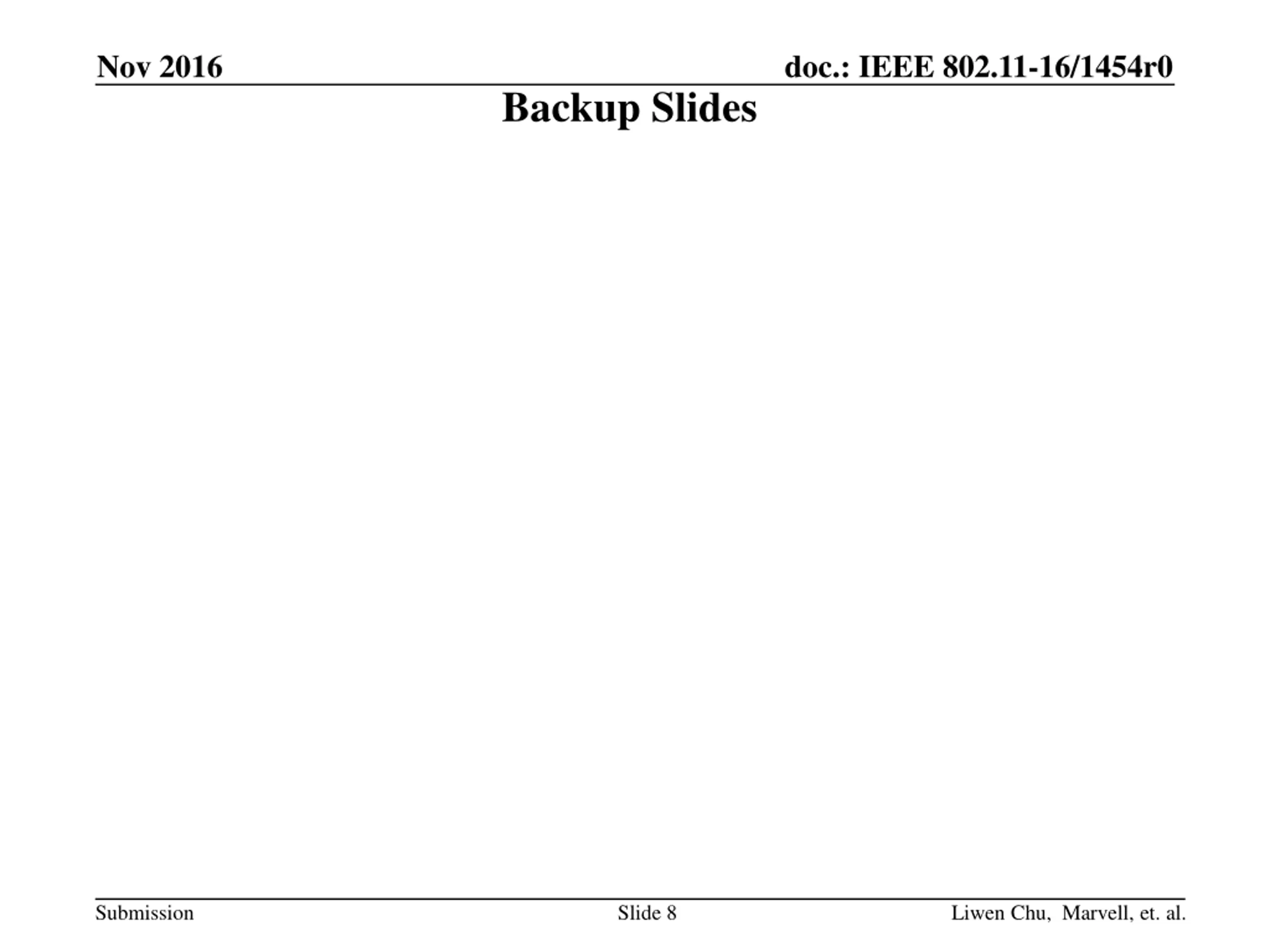 Nov 2016 doc.: IEEE 802.11-16/1454r0 Backup Slides Submission Slide 8 Liwen Chu, Marvell, et. al.