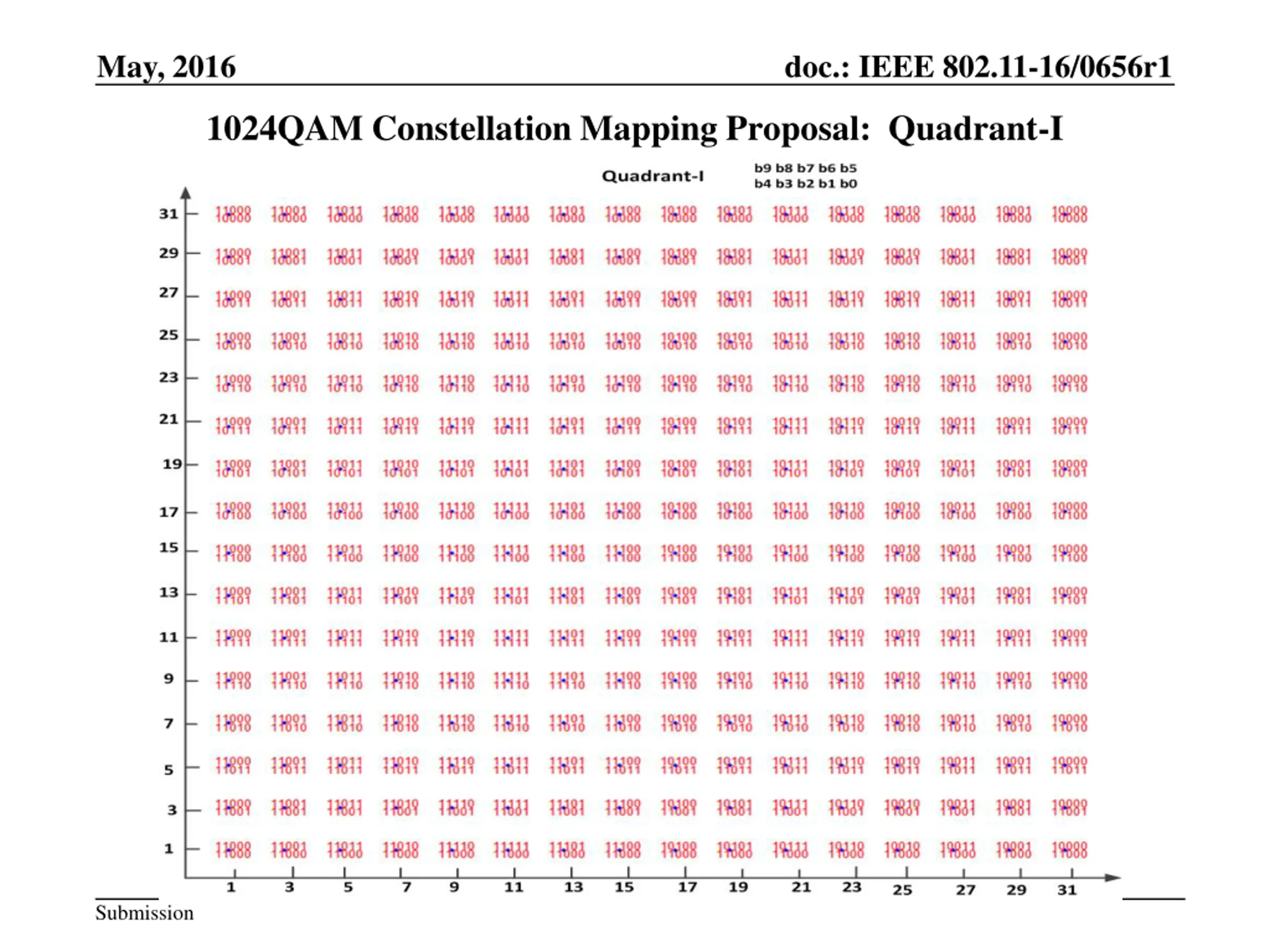 May, 2016 doc.: IEEE 802.11-16/0656r1 1024QAM Constellation Mapping Proposal: Quadrant-I Submission
