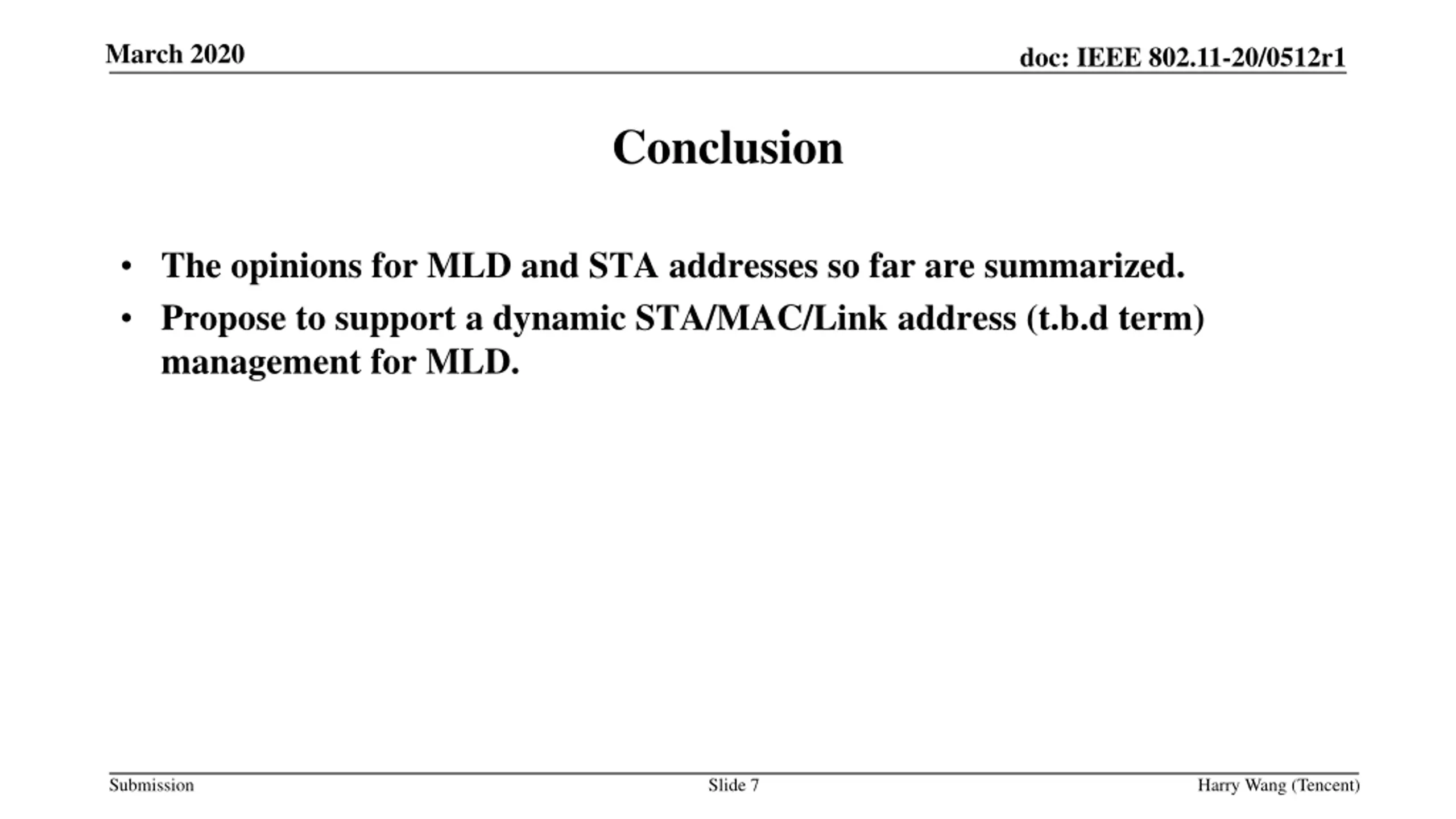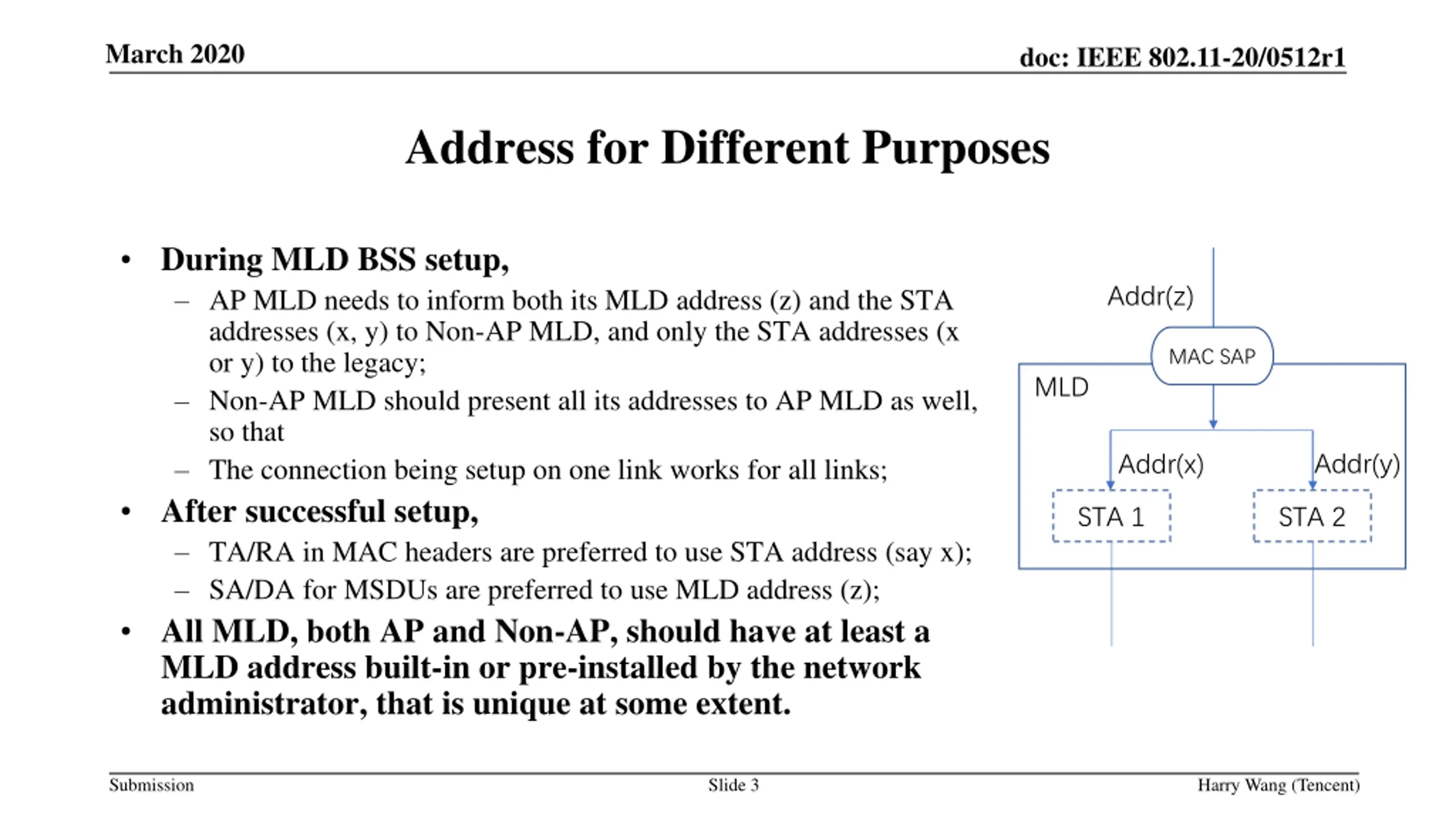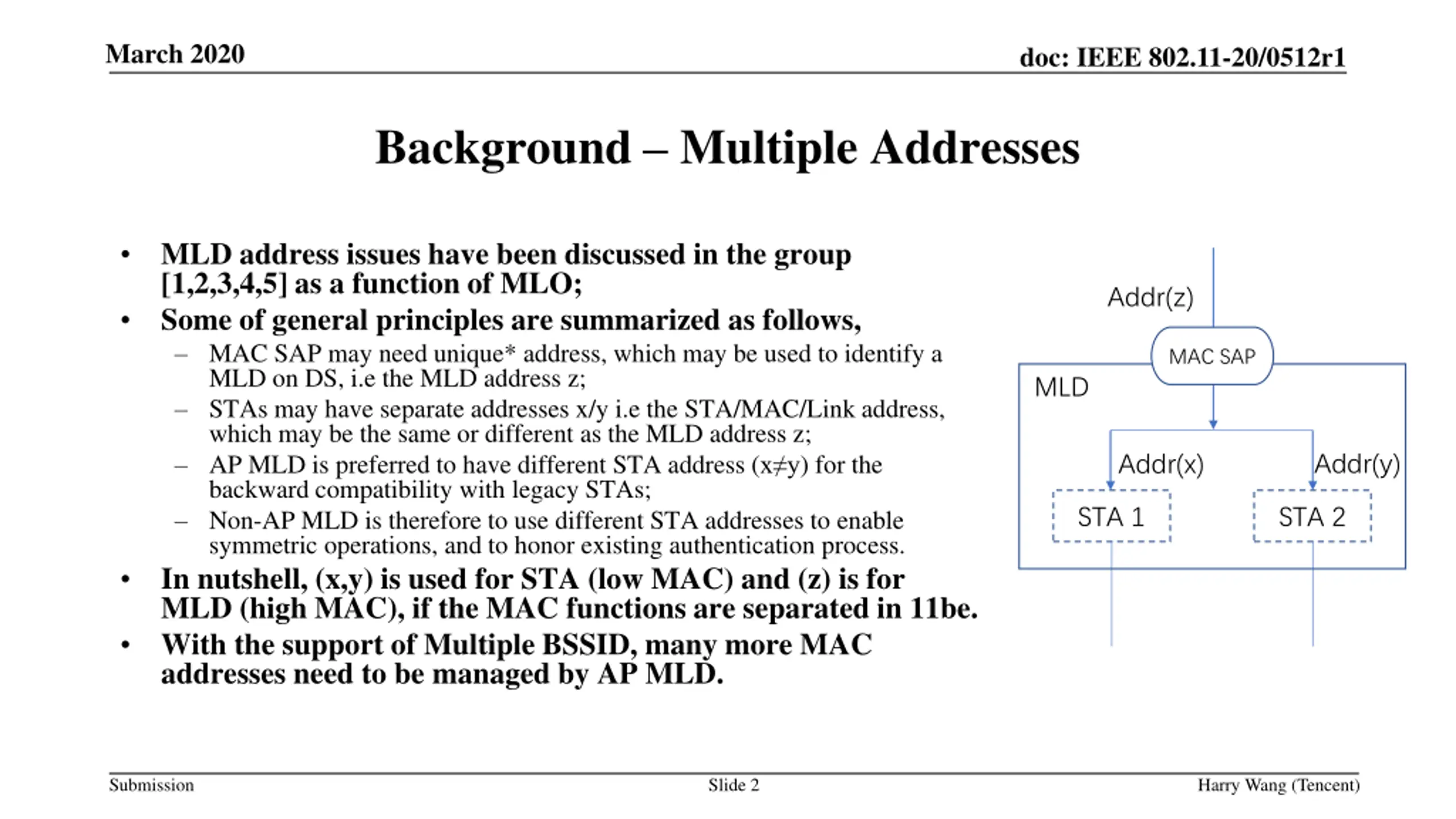 IEEE 802.11-20/0512r1 MLD Address Management Discussion