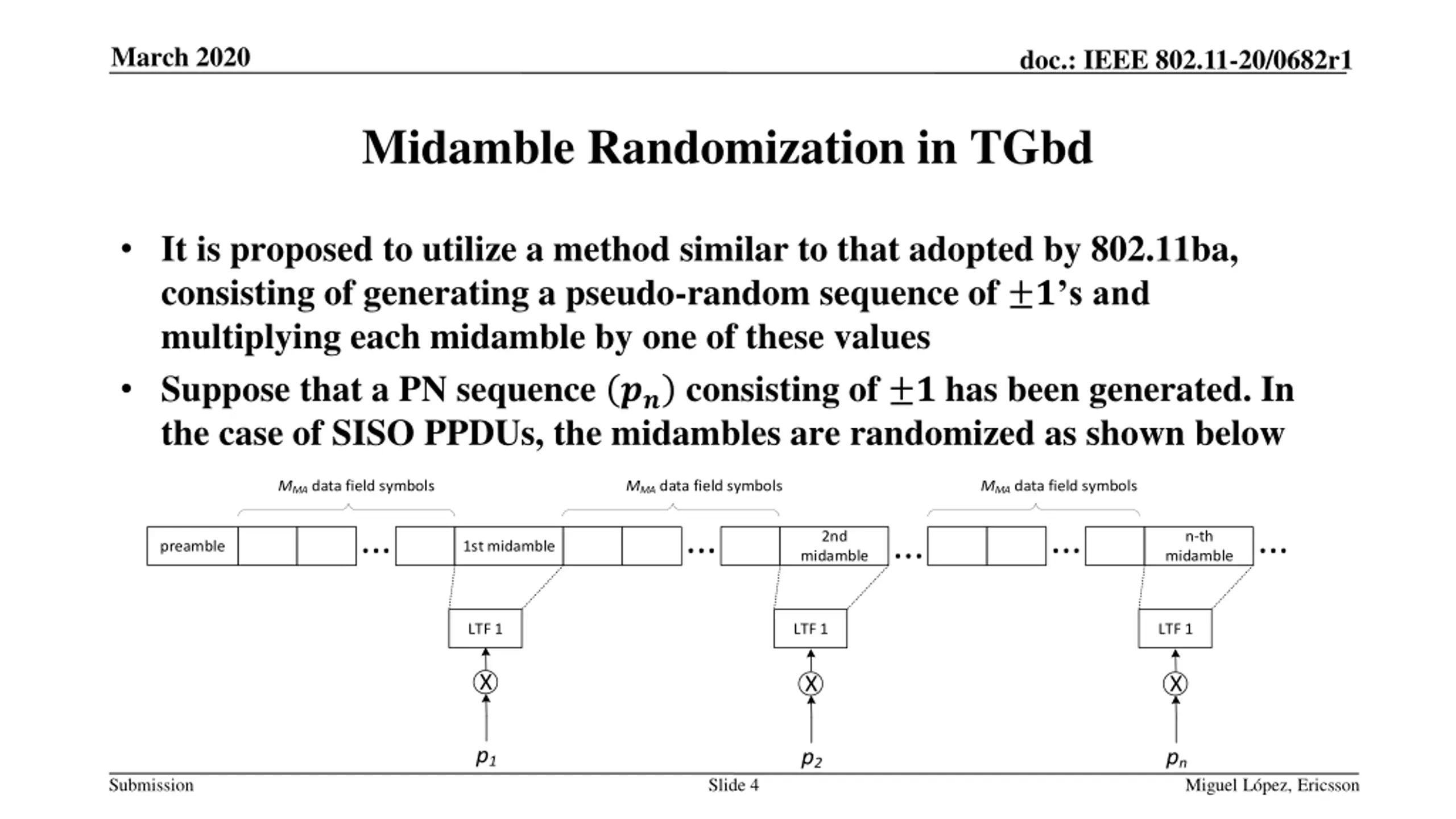 IEEE 802.11-20/0682r1 Midamble Randomization in TGbd