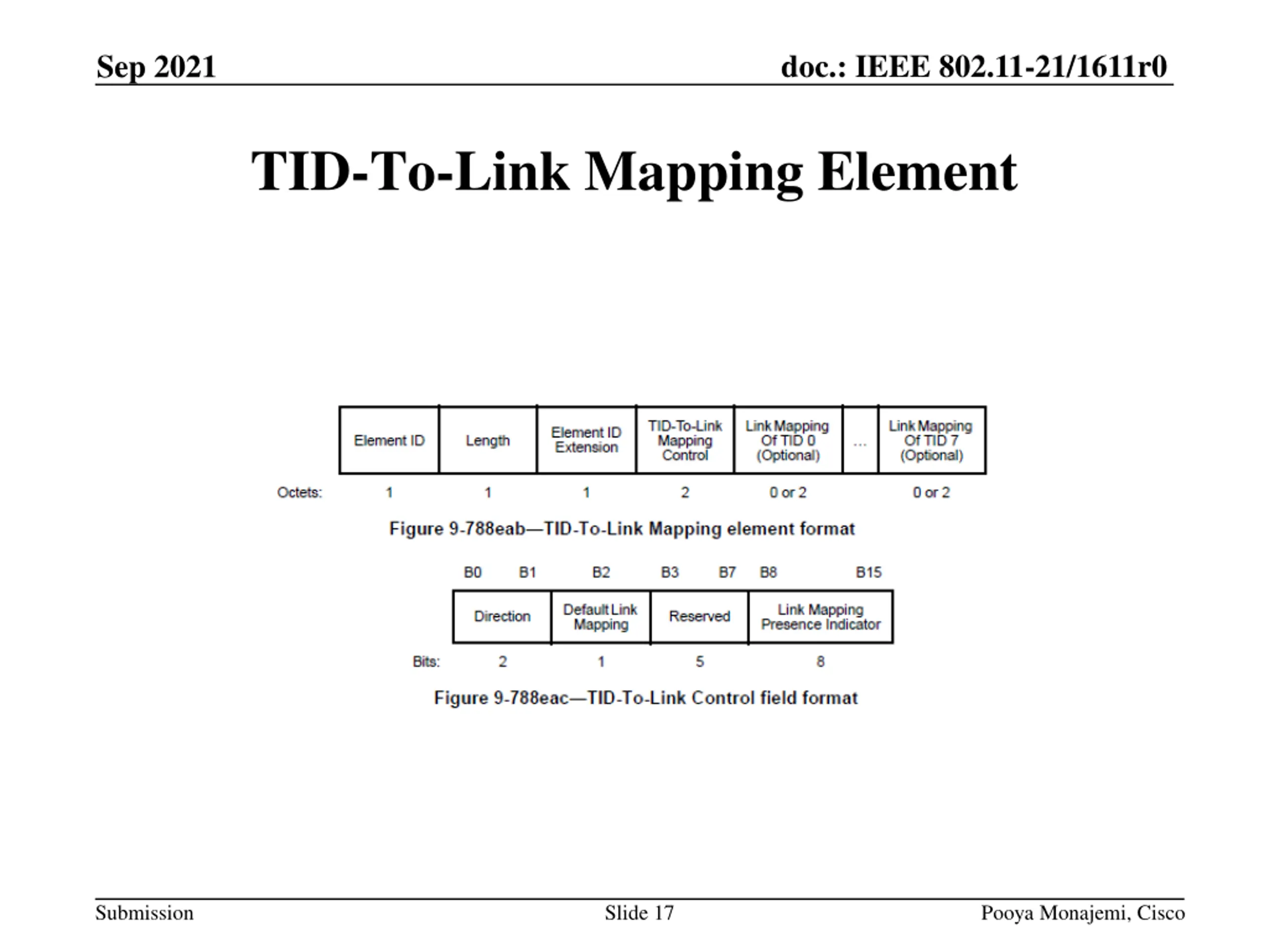 doc.: IEEE 802.11-21/1611r0 Sep 2021 TID-To-Link Mapping Element Submission Slide 17 Pooya Monajemi, Cisco