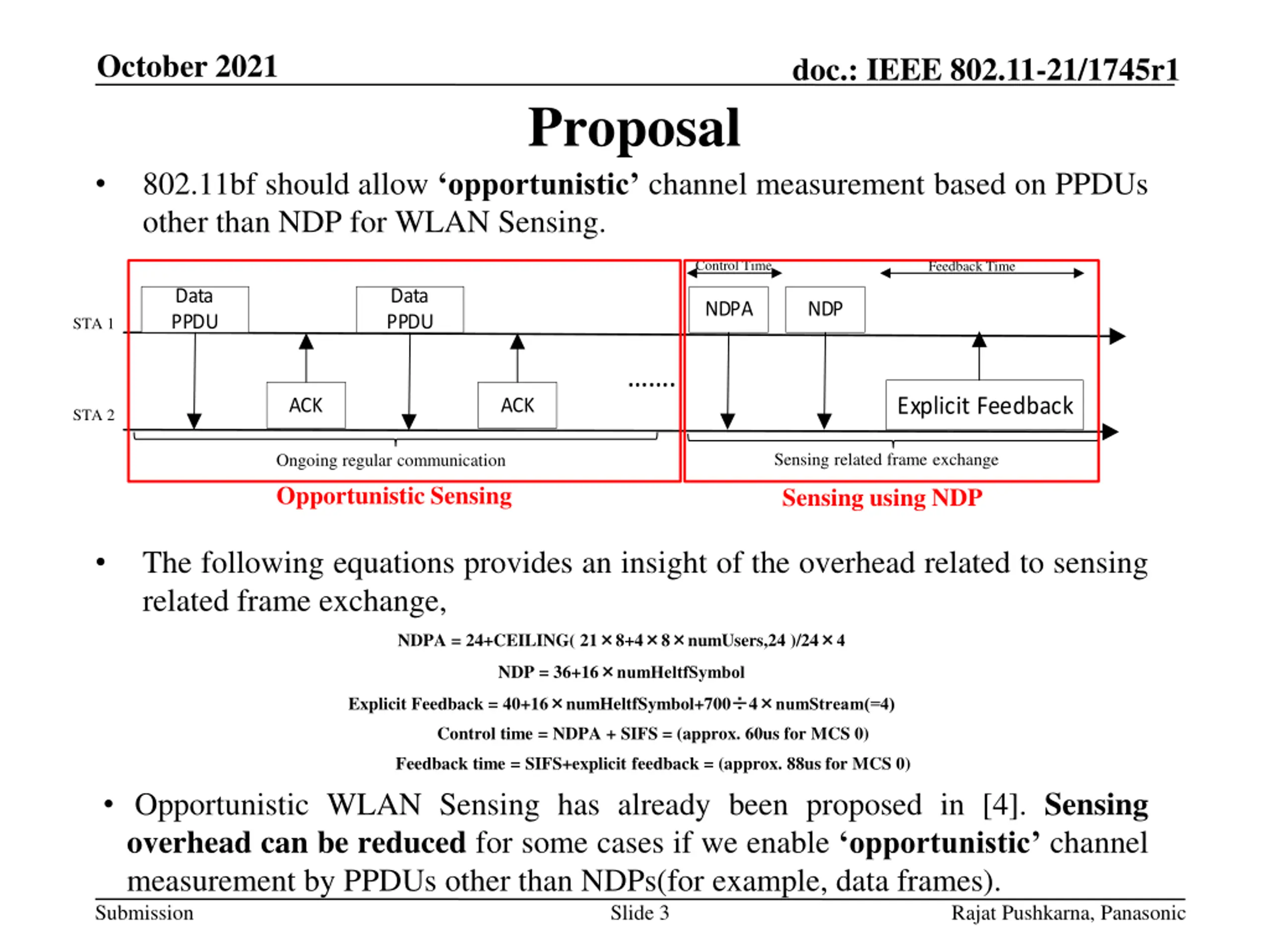 IEEE 802.11-21 Opportunistic WLAN Sensing Protocol Overview