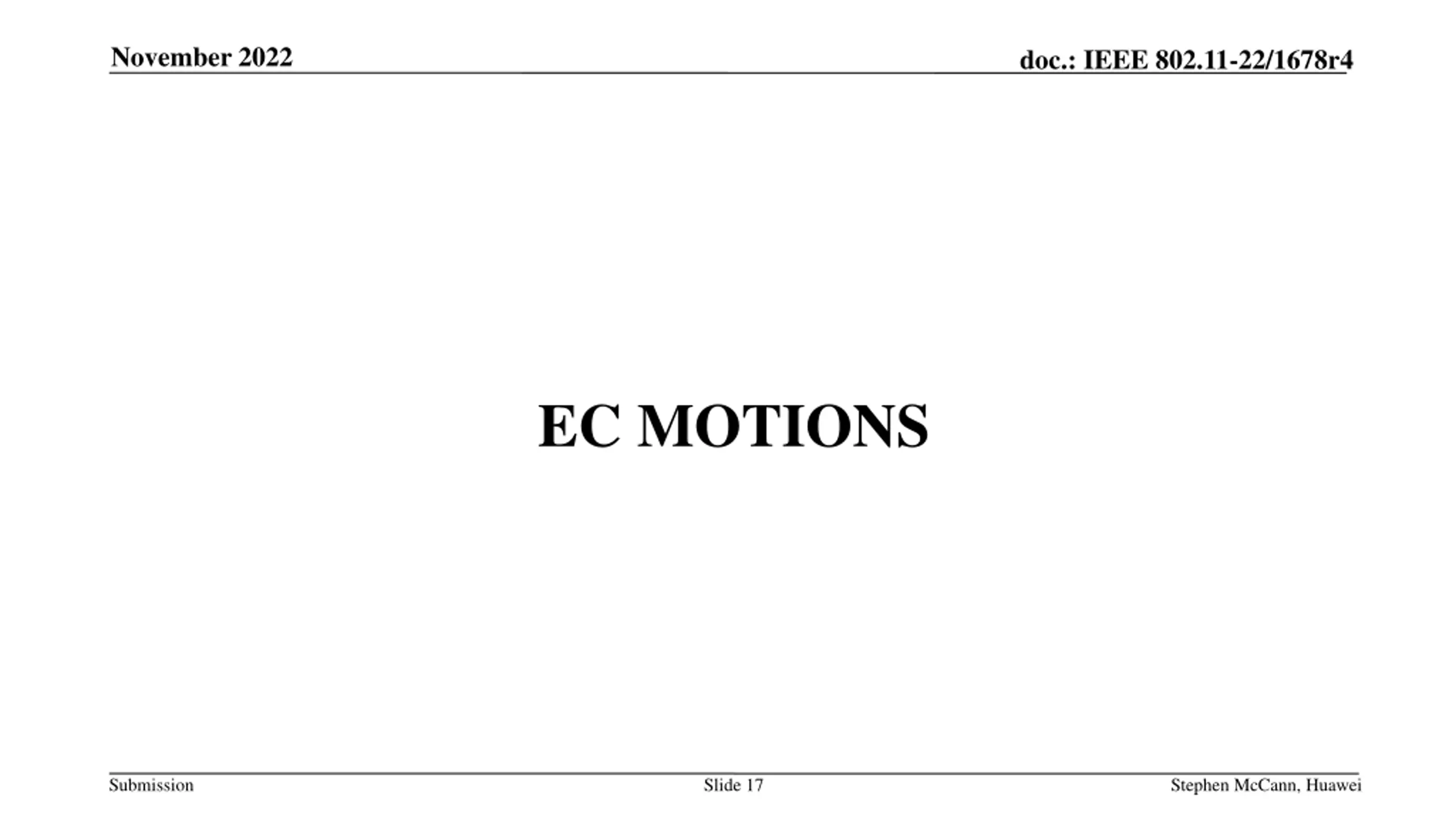 November 2022 doc.: IEEE 802.11-22/1678r4 EC MOTIONS Submission Slide 17 Stephen McCann, Huawei