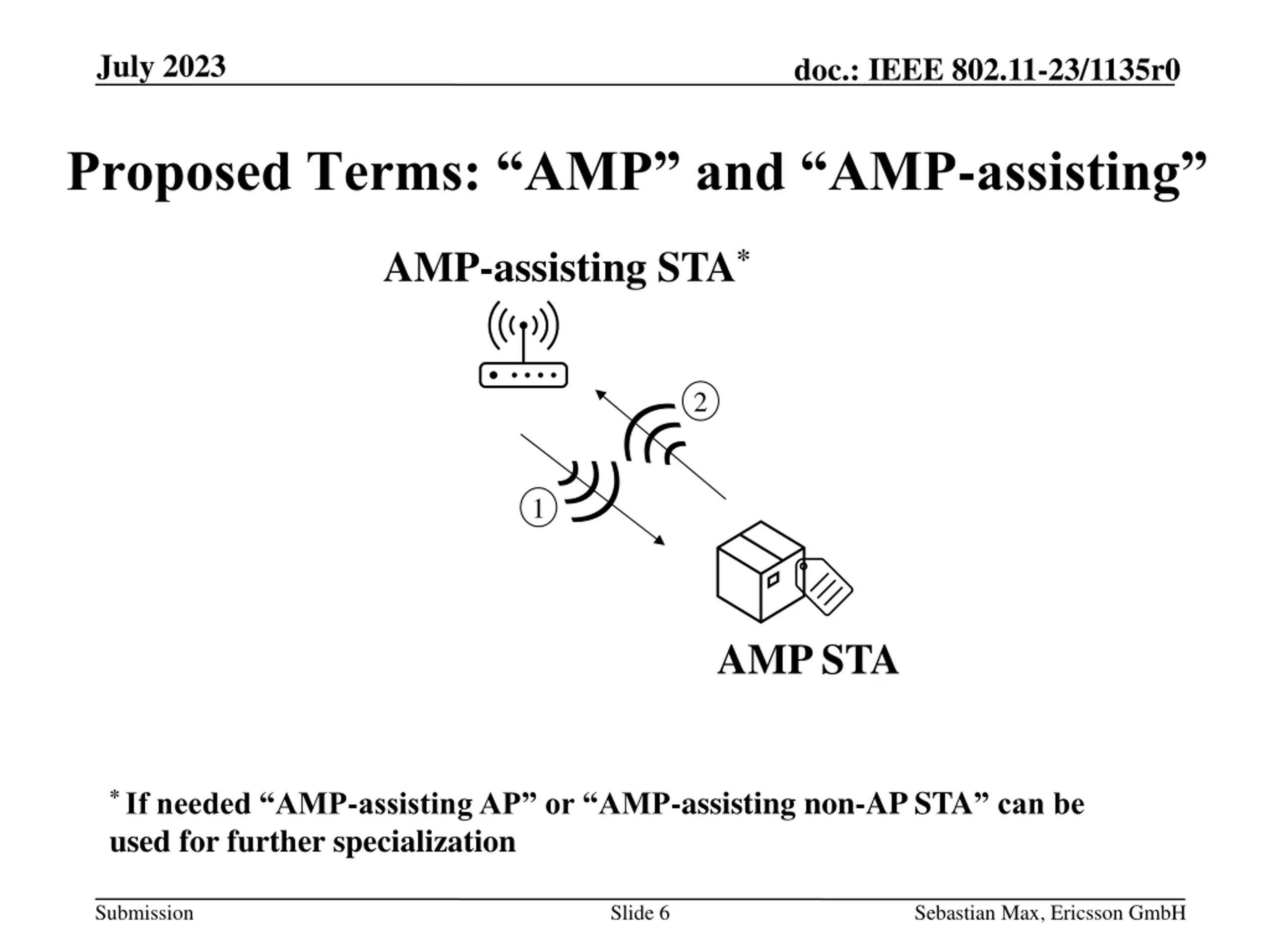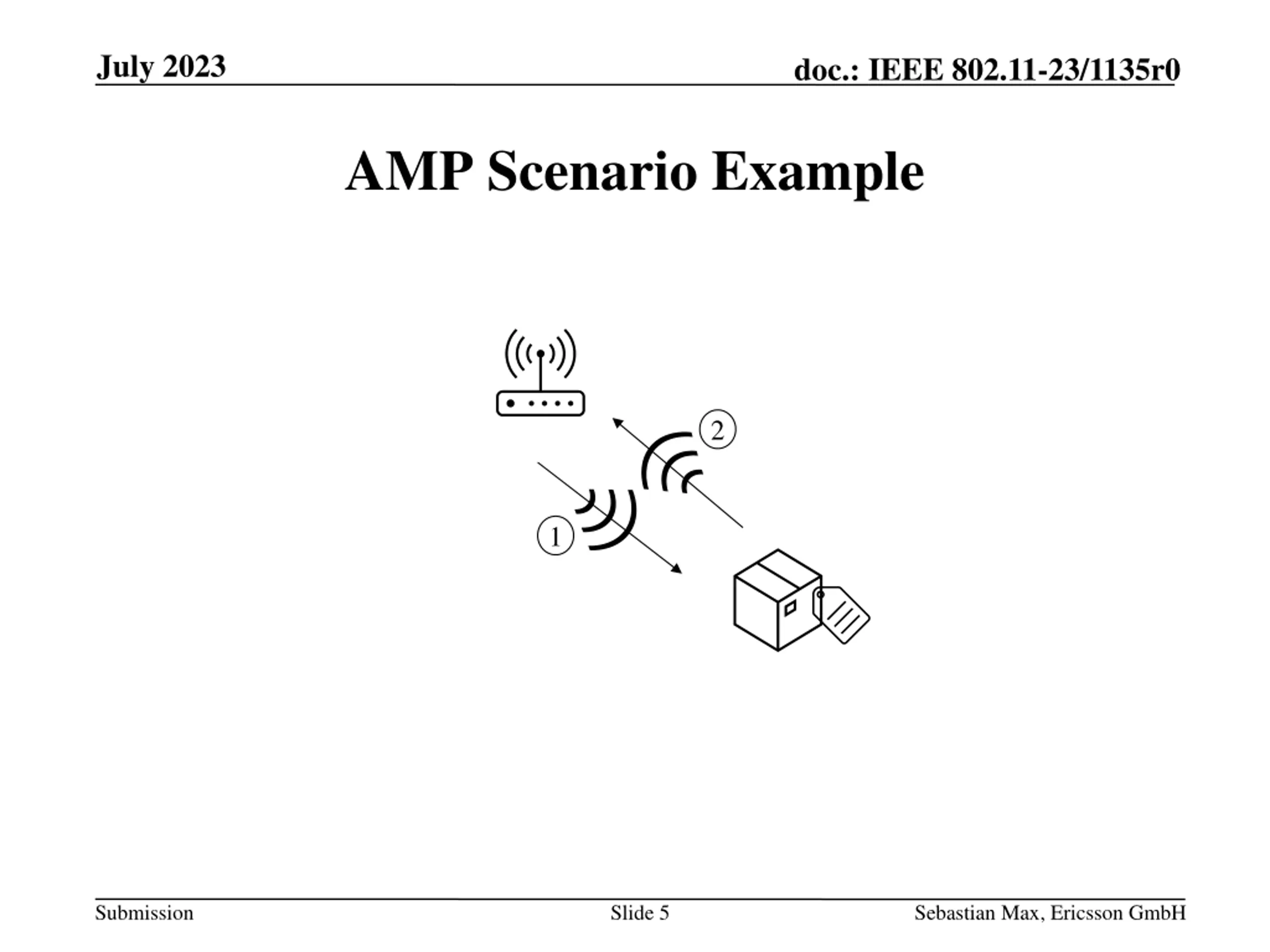 July 2023 doc.: IEEE 802.11-23/1135r0 AMP Scenario Example 2 1 Submission Slide 5 Sebastian Max, Ericsson GmbH