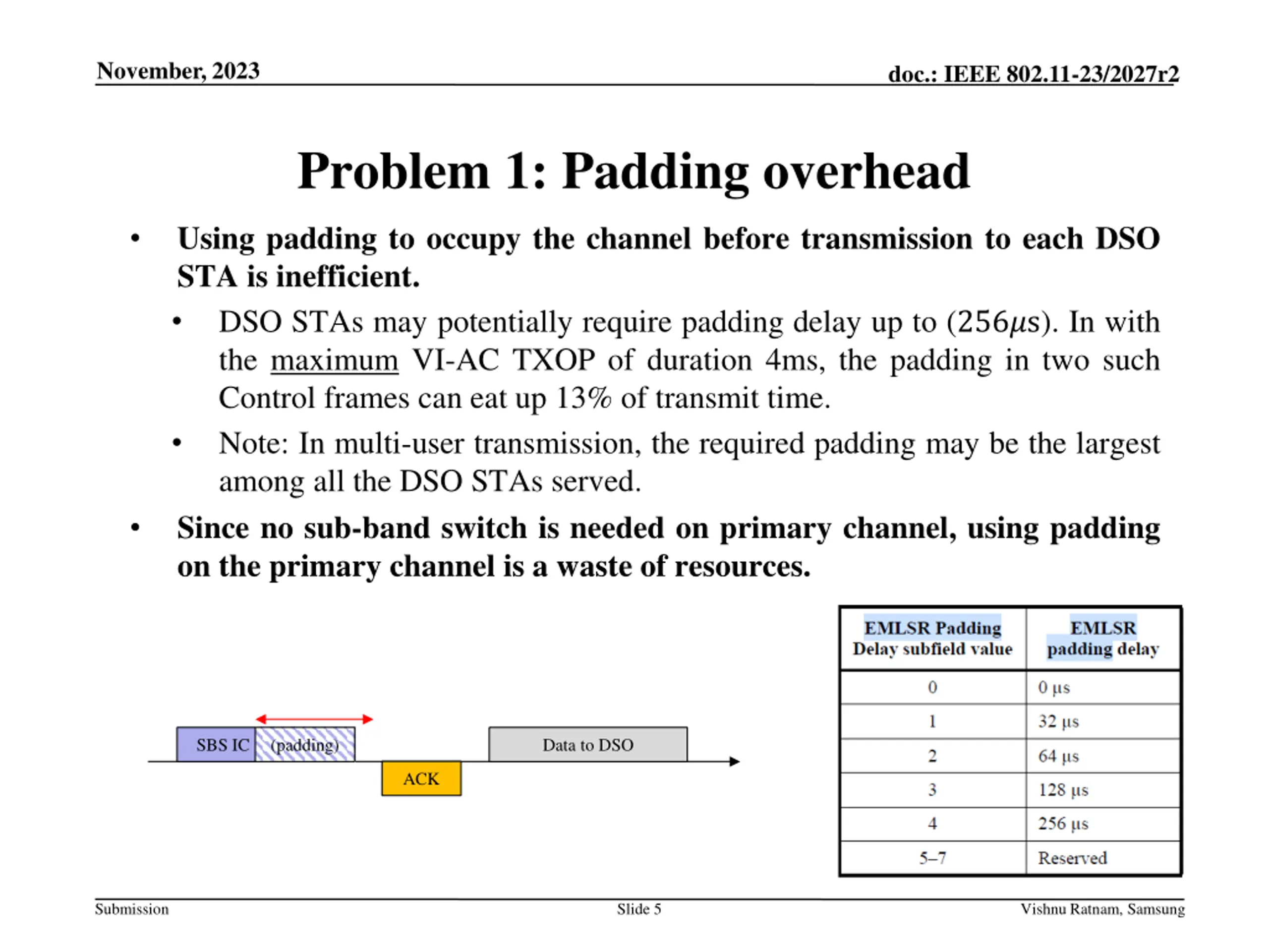 "Explore solutions for sub-band switch delay issues in Dynamic Sub-band Operation (DSO) as proposed in IEEE 802.11-23/2027r2. Addressing problems related to padding overhead and optimizing channel occupancy for efficient transmission to DSO STAs."