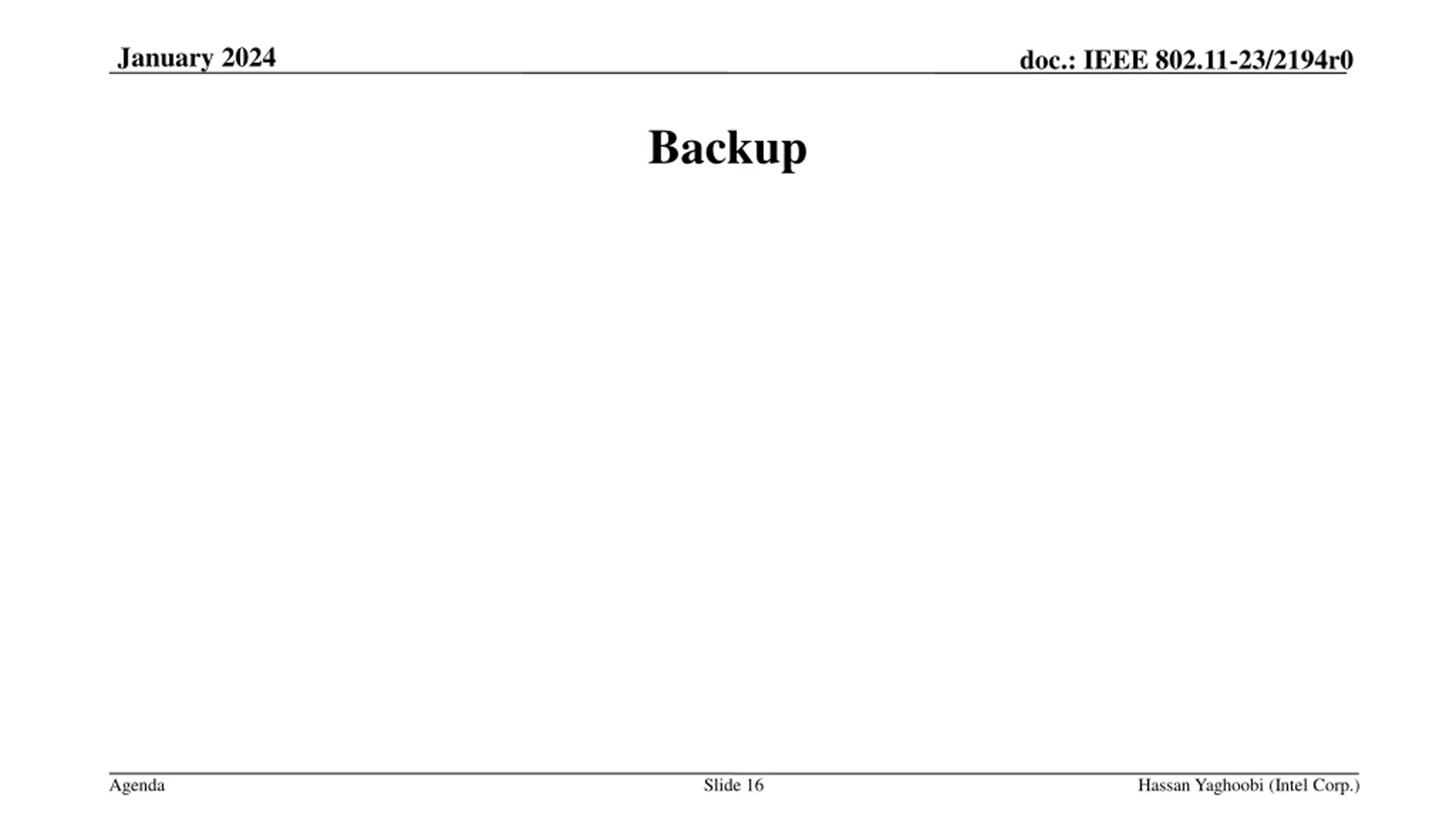 January 2024 doc.: IEEE 802.11-23/2194r0 Backup Agenda Slide 16 Hassan Yaghoobi (Intel Corp.)