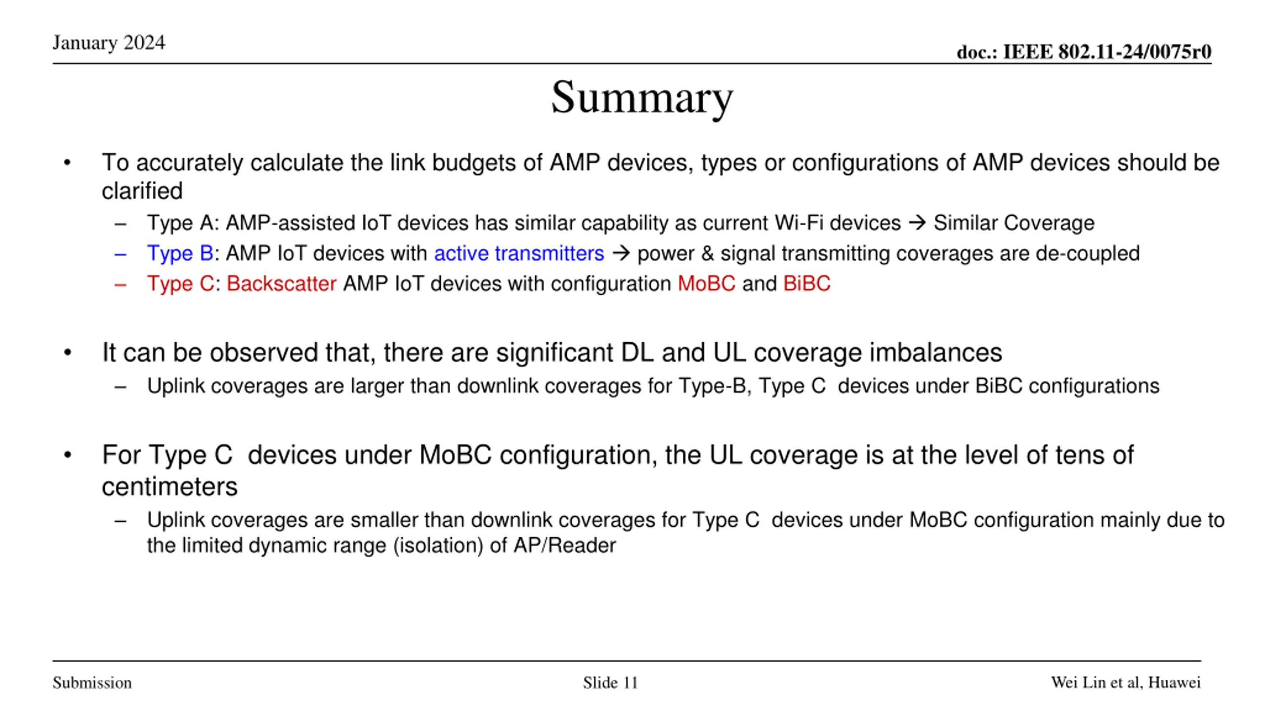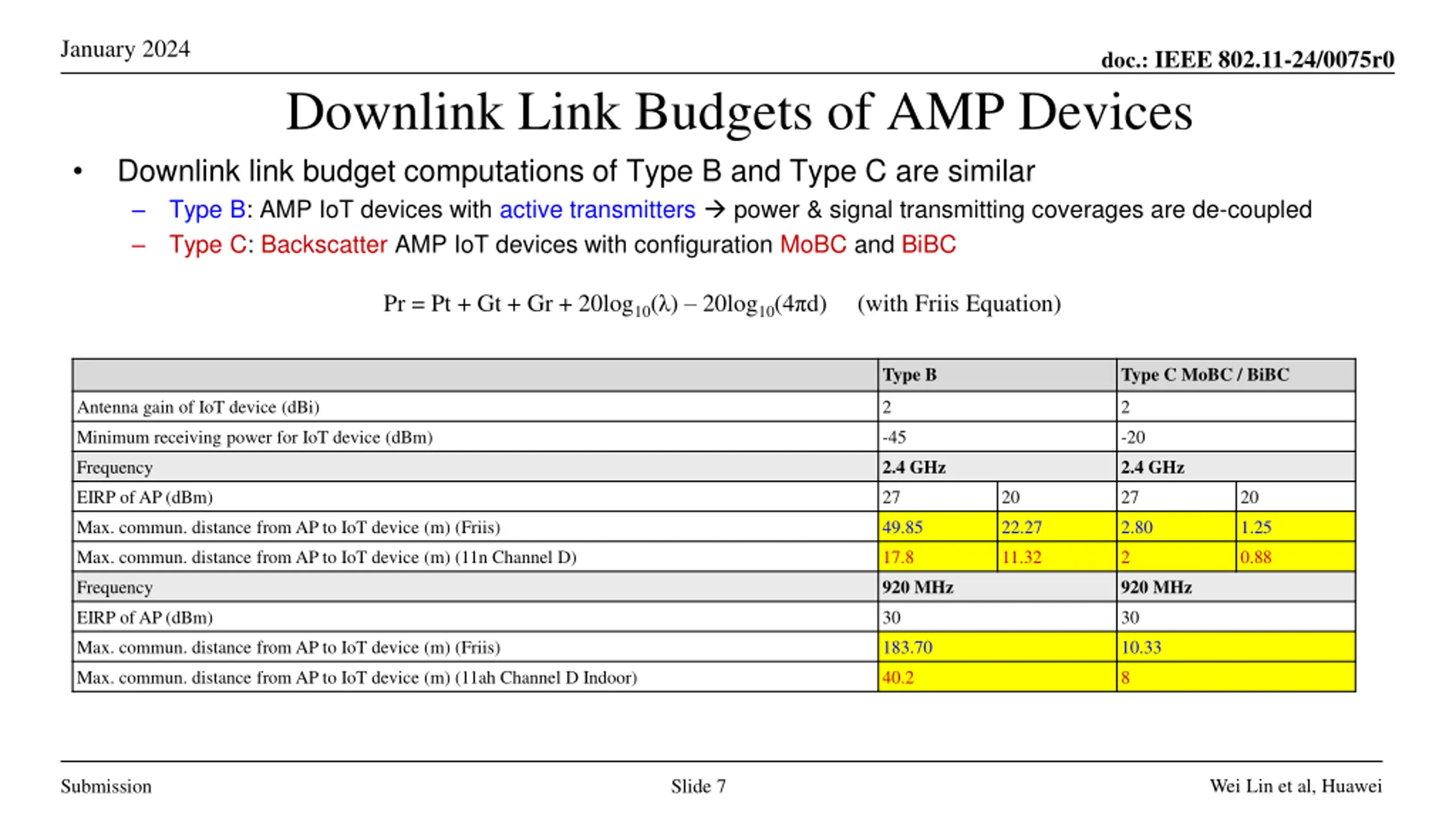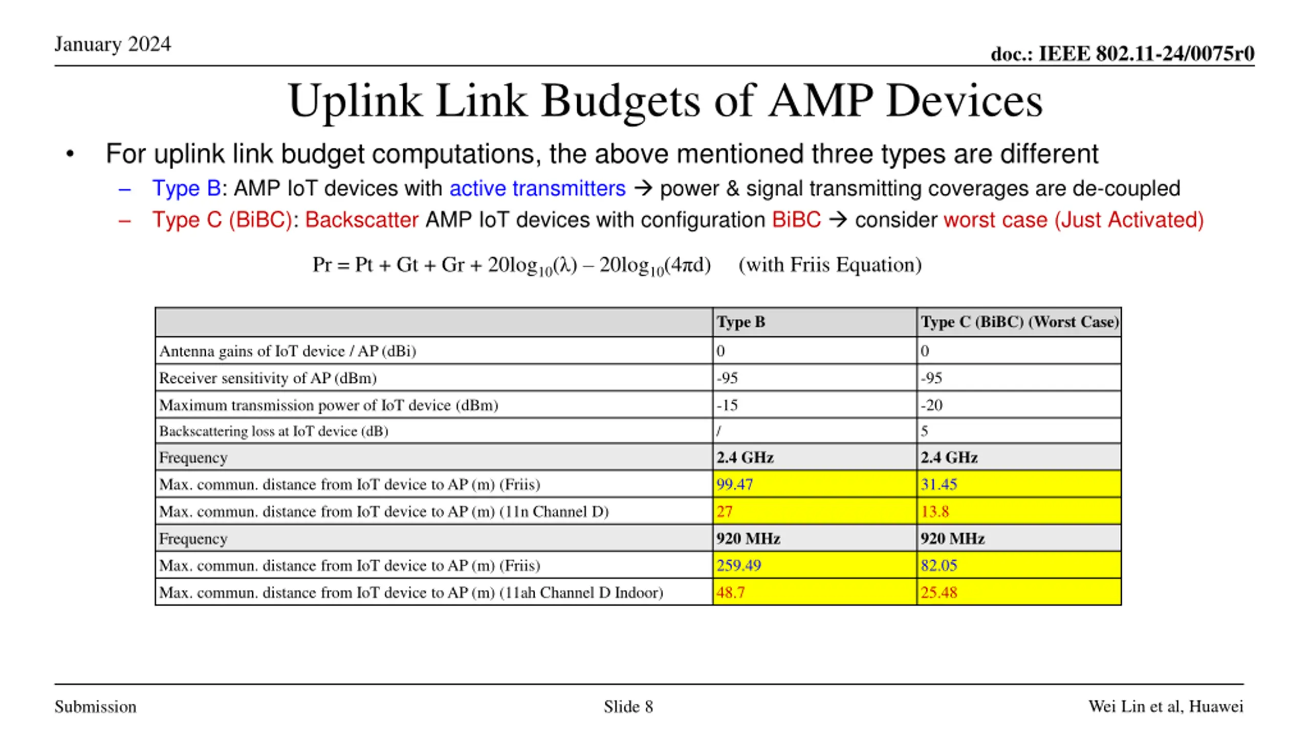 IEEE 802.11-24/0075r0 Follow Up on AMP Link Budgets