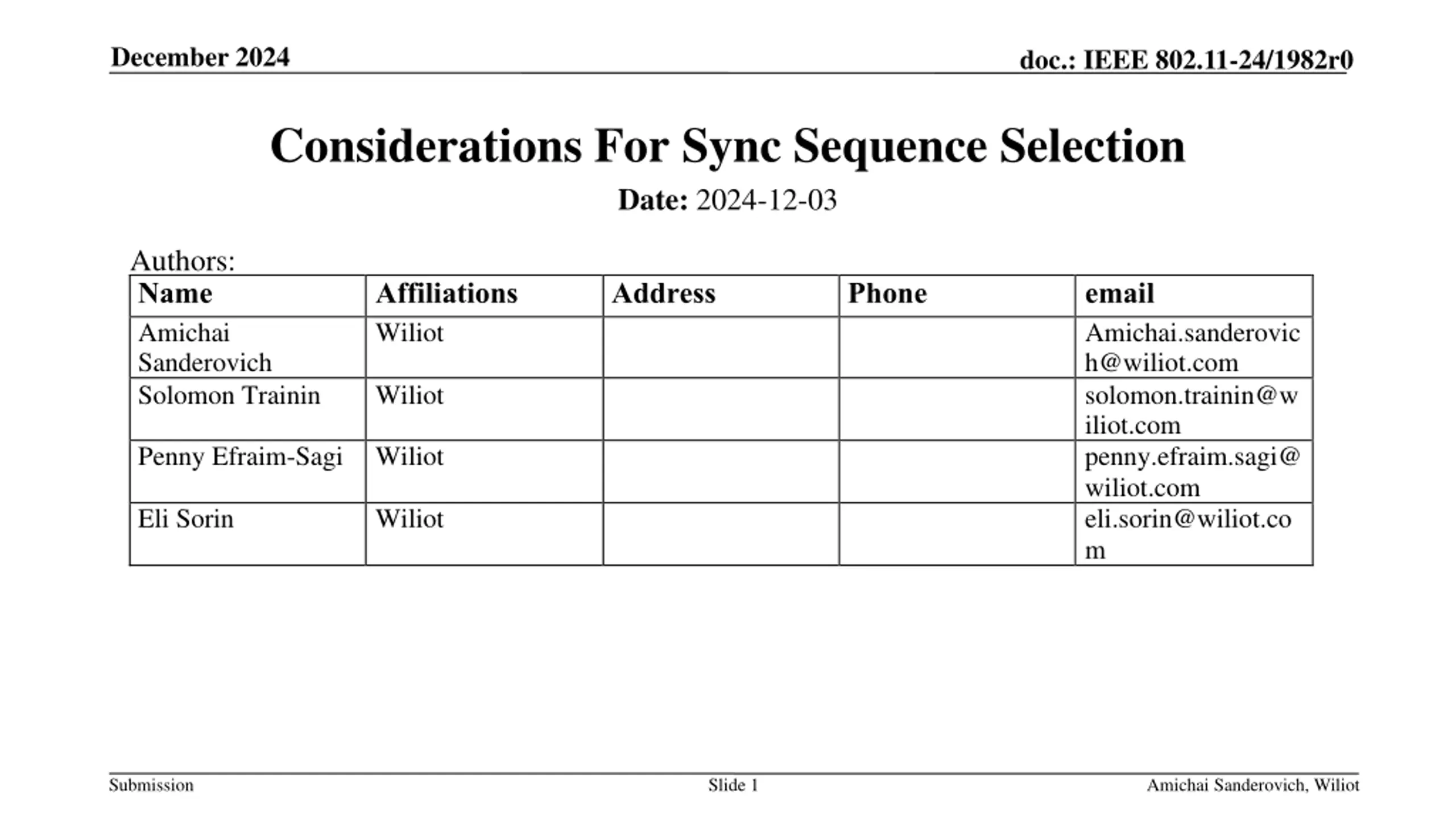 IEEE 802.11-24/1982r0 Sync Sequence Selection Considerations