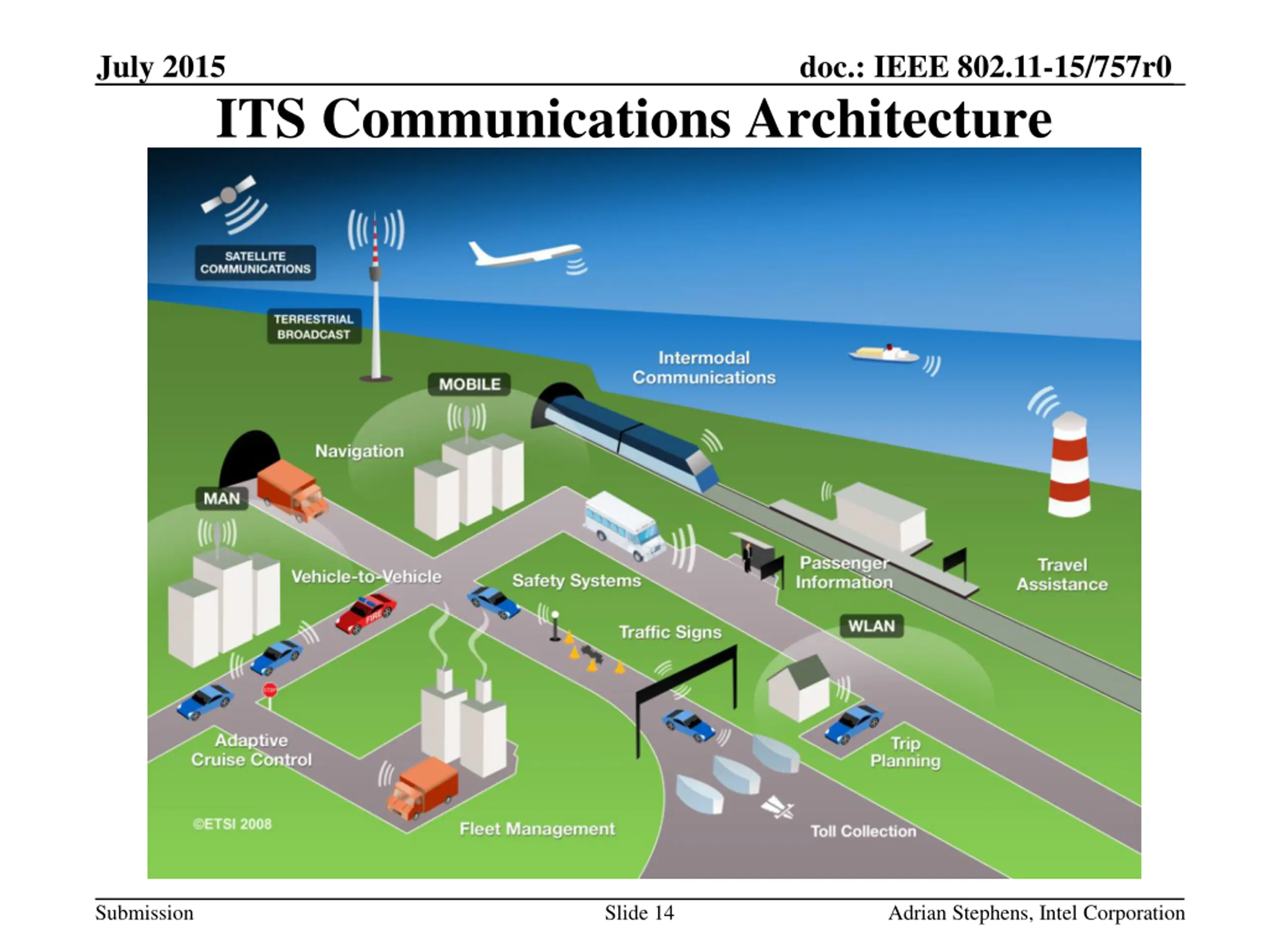 July 2015 doc.: IEEE 802.11-15/757r0 ITS Communications Architecture Submission Slide 14 Adrian Stephens, Intel Corporation