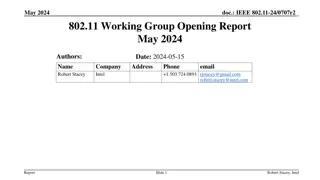 Guidelines for IEEE-SA Meetings All IEEE-SA standards meetings shall be conducted in compliance with all applicable laws, including antitrust and competition laws. Don t discuss the interpretation, validity, or essentiality of patents/patent claims. Don t discuss specific license rates, terms, or conditions. Relative costs, including licensing costs of essential patent claims, of different technical approaches may be discussed in standards development meetings. Technical considerations remain primary focus Don t discuss or engage in the fixing of product prices, allocation of customers, or division of sales markets. Don t discuss the status or substance of ongoing or threatened litigation. Don t be silent if inappropriate topics are discussed do formally object. --------------------------------------------------------------- If you have questions, contact the IEEE-SA Standards Board Patent Committee Administrator at patcom@ieee.org or visit http://standards.ieee.org/about/sasb/patcom/index.html See IEEE-SA Standards Board Operations Manual, clause 5.3.10 and Promoting Competition and Innovation: What You Need to Know about the IEEE Standards Association's Antitrust and Competition Policy for more details. This slide set is available at https://development.standards.ieee.org/myproject/Public/mytools/mob/preparslides.ppt March 2015 IEEE-SA Standards Board Patent Committee