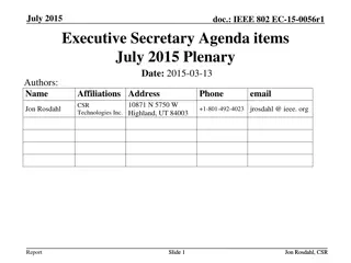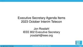 Executive Secretary Agenda Items 2023 March Plenary Jon Rosdahl IEEE 802 Executive Secretary jrosdahl@ieee.org EEE 802 2023 March IEEE 802 Mixed Mode Plenary Page 1 doc: 802 ec-23-0049-00-00EC