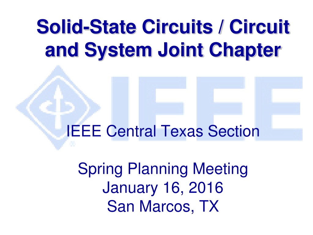 Solid-State Circuits / Circuit and System Joint Chapter IEEE Central Texas Section Spring Planning Meeting January 16, 2016 San Marcos, TX