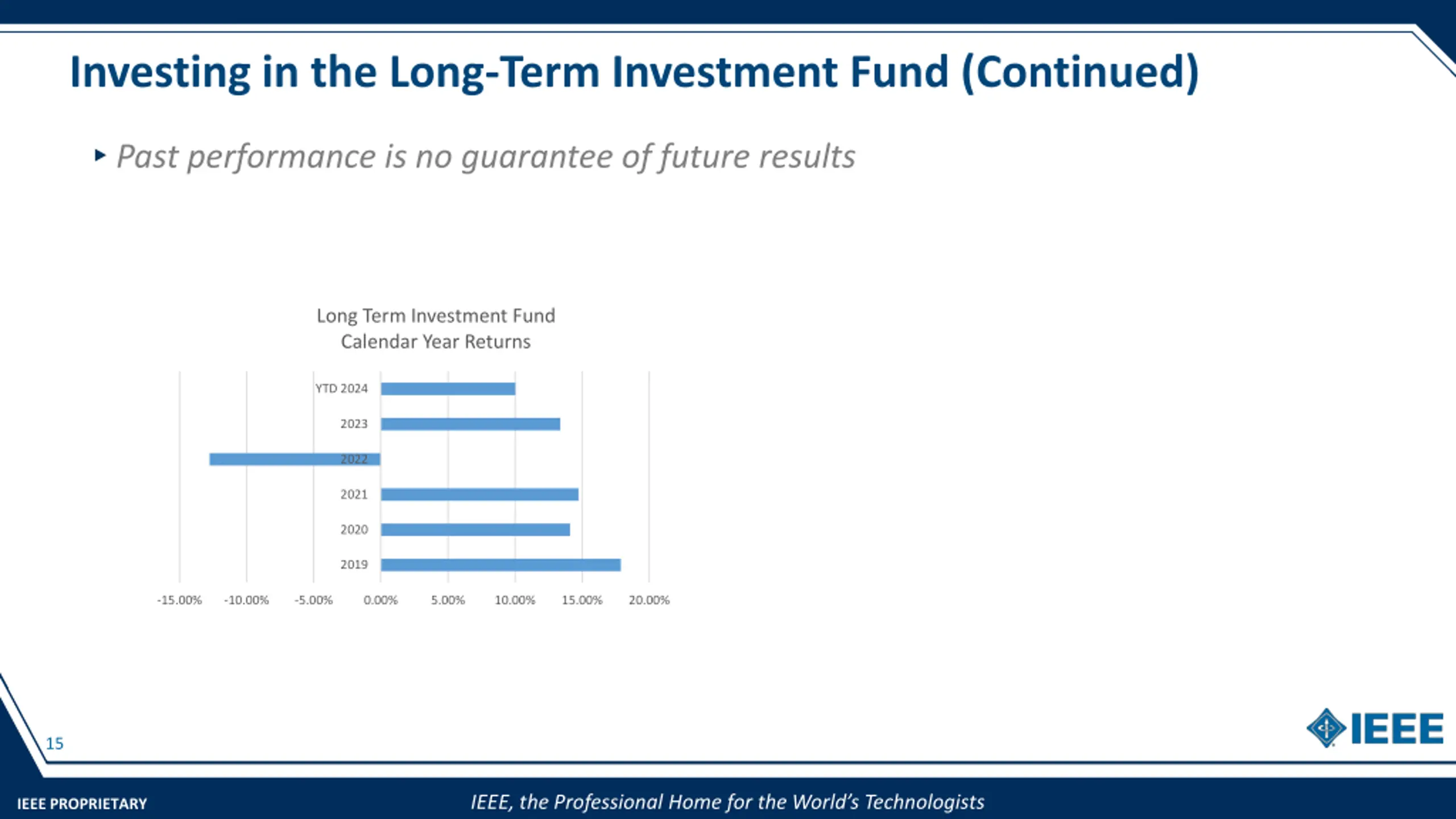 Investing in the Long-Term Investment Fund (Continued) Past performance is no guarantee of future results Long Term Investment Fund Calendar Year Returns YTD 2024 2023 2022 2021 2020 2019 -15.00% -10.00% -5.00% 0.00% 5.00% 10.00% 15.00% 20.00% 15 IEEE, the Professional Home for the World s Technologists IEEE PROPRIETARY