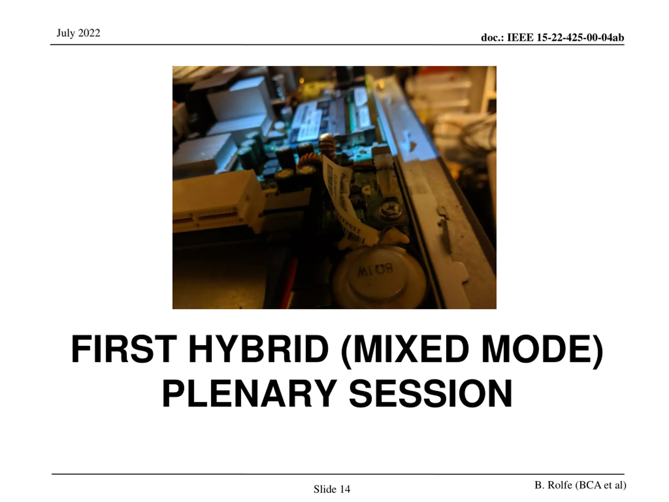 July 2022 doc.: IEEE 15-22-425-00-04ab FIRST HYBRID (MIXED MODE) PLENARY SESSION B. Rolfe (BCA et al) Slide 14