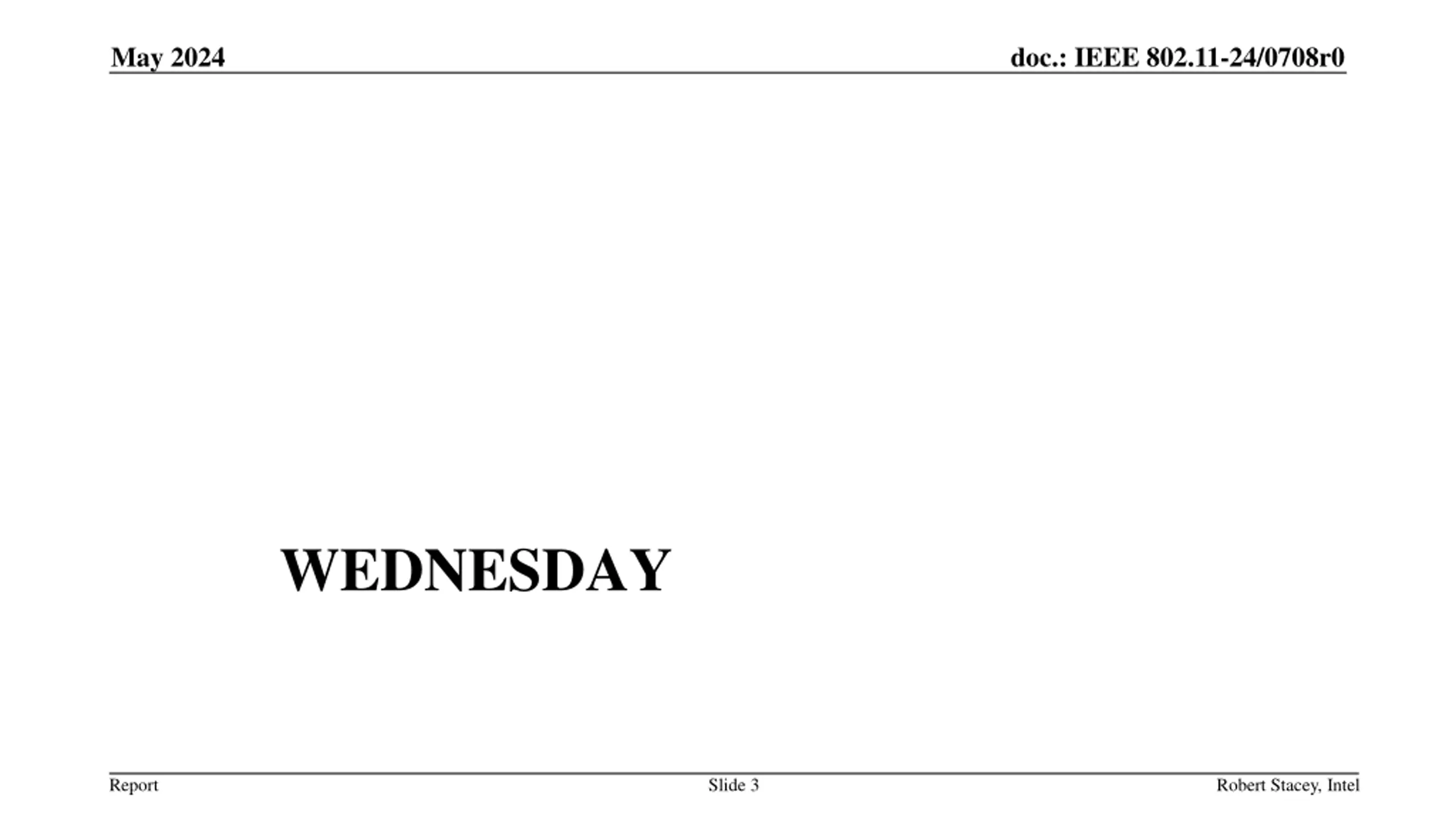 May 2024 doc.: IEEE 802.11-24/0708r0 WEDNESDAY Report Slide 3 Robert Stacey, Intel