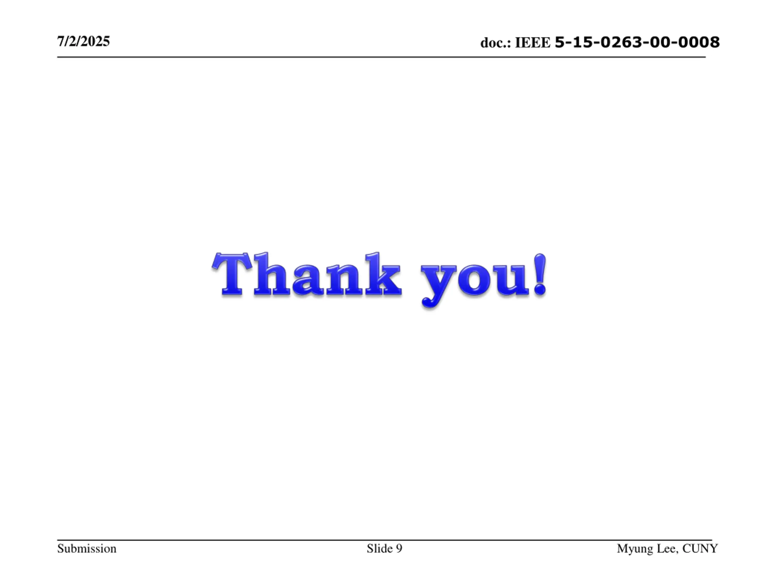 7/2/2025 doc.: IEEE 5-15-0263-00-0008 Submission Slide 9 Myung Lee, CUNY