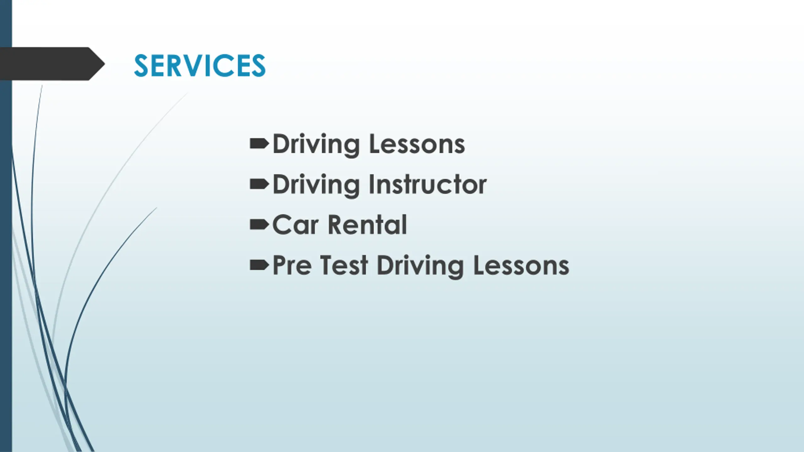SERVICES Driving Lessons Driving Instructor Car Rental Pre Test Driving Lessons