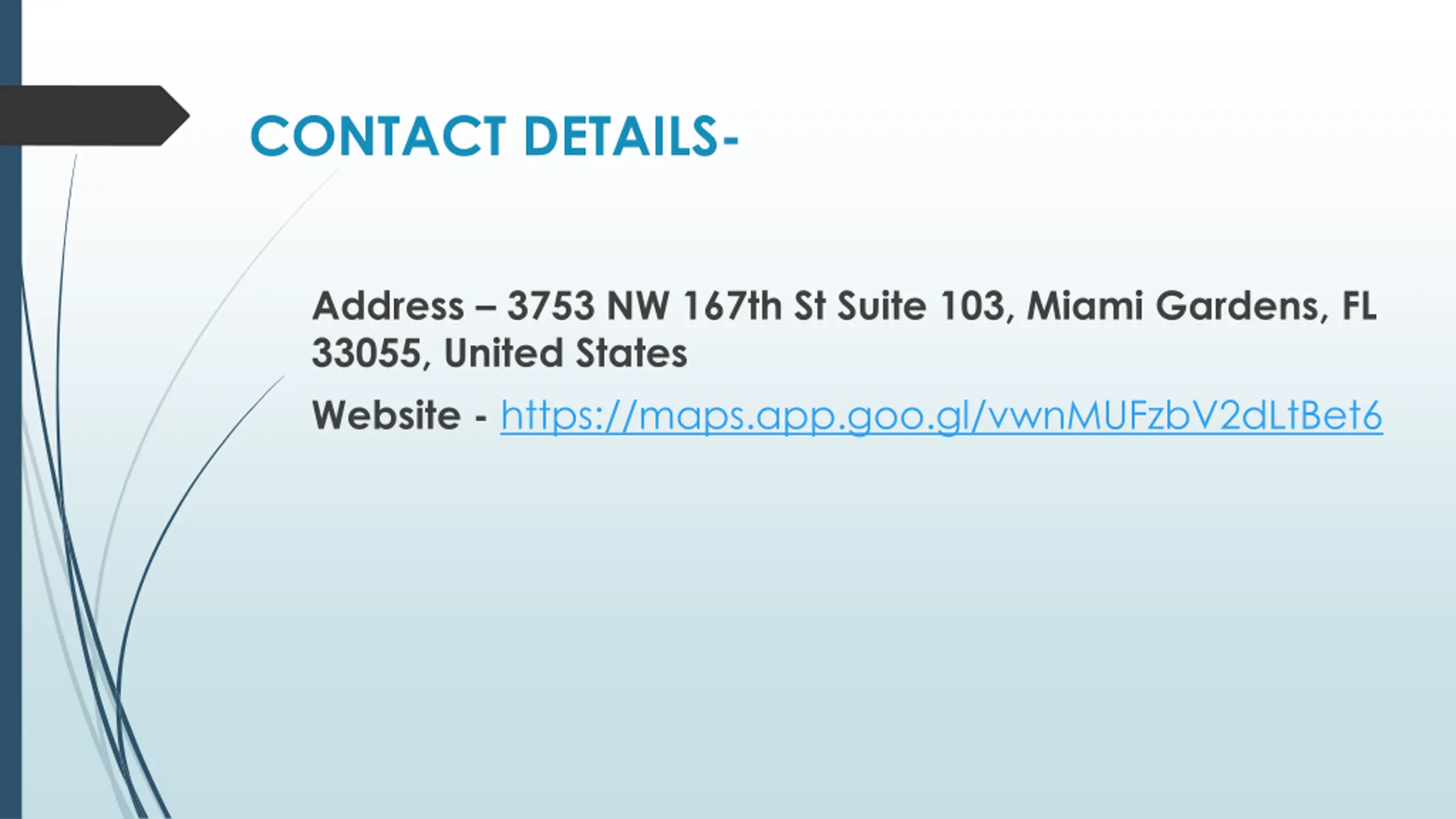 CONTACT DETAILS- Address 3753 NW 167th St Suite 103, Miami Gardens, FL 33055, United States Website - https://maps.app.goo.gl/vwnMUFzbV2dLtBet6