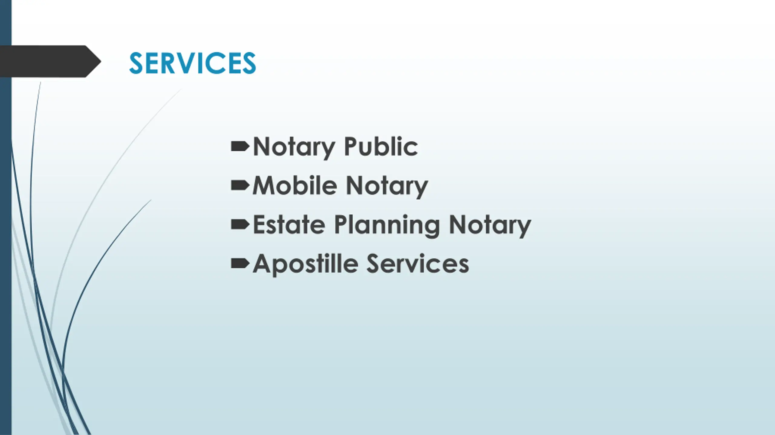 SERVICES Notary Public Mobile Notary Estate Planning Notary Apostille Services
