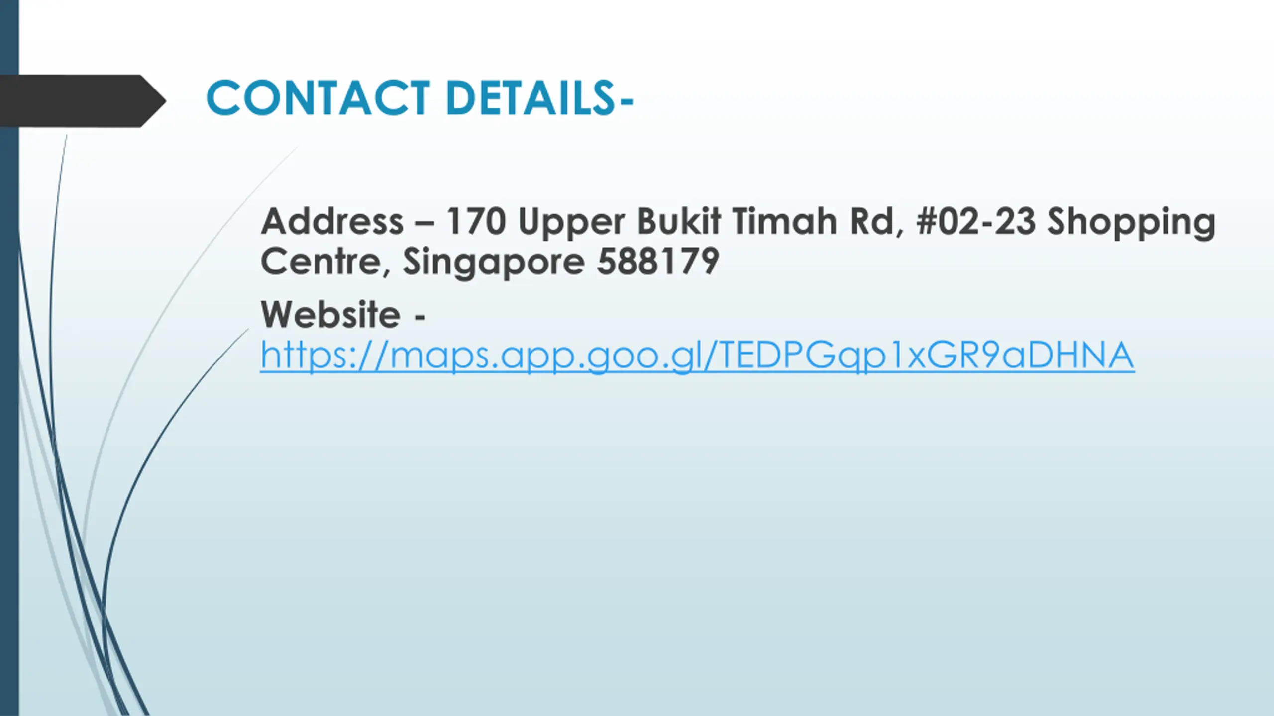 CONTACT DETAILS- Address 170 Upper Bukit Timah Rd, #02-23 Shopping Centre, Singapore 588179 Website - https://maps.app.goo.gl/TEDPGqp1xGR9aDHNA