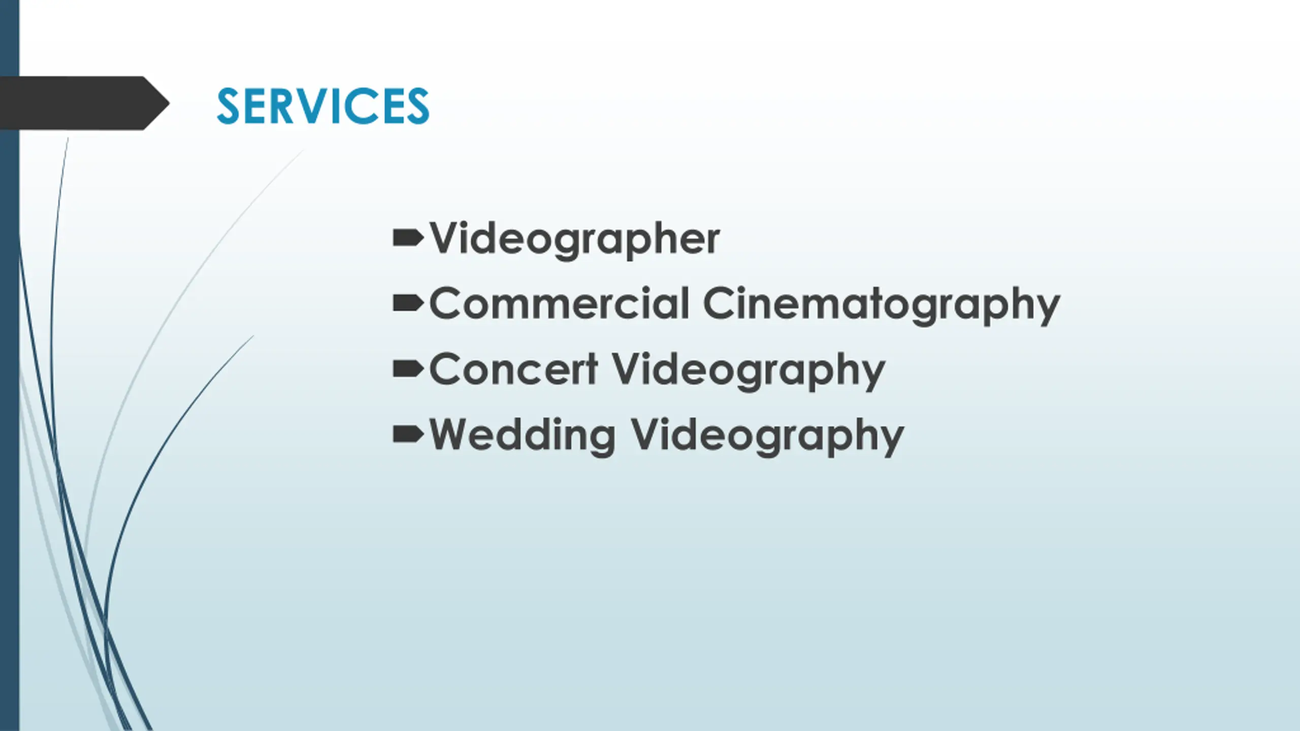 SERVICES Videographer Commercial Cinematography Concert Videography Wedding Videography