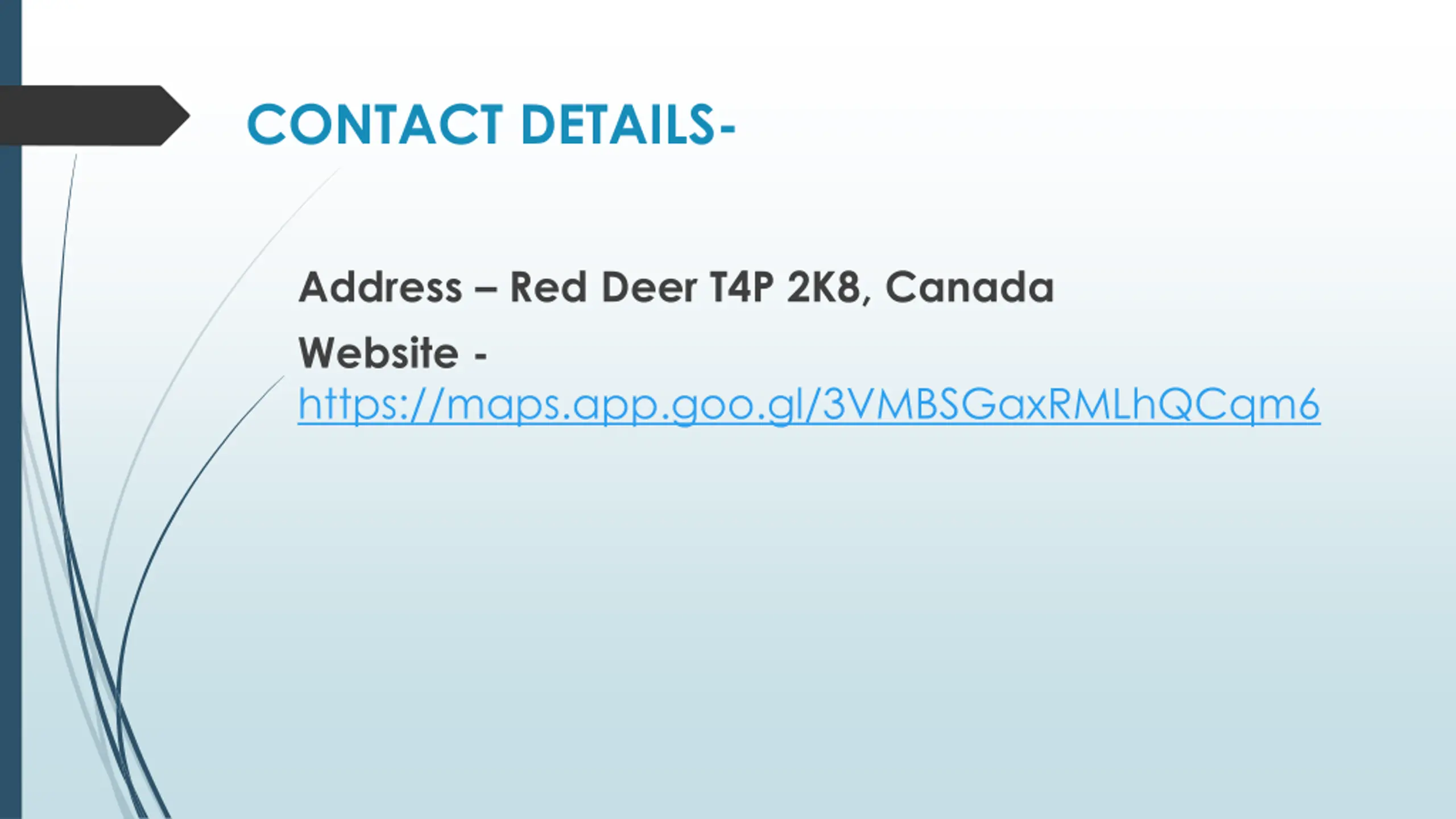 CONTACT DETAILS- Address Red Deer T4P 2K8, Canada Website - https://maps.app.goo.gl/3VMBSGaxRMLhQCqm6