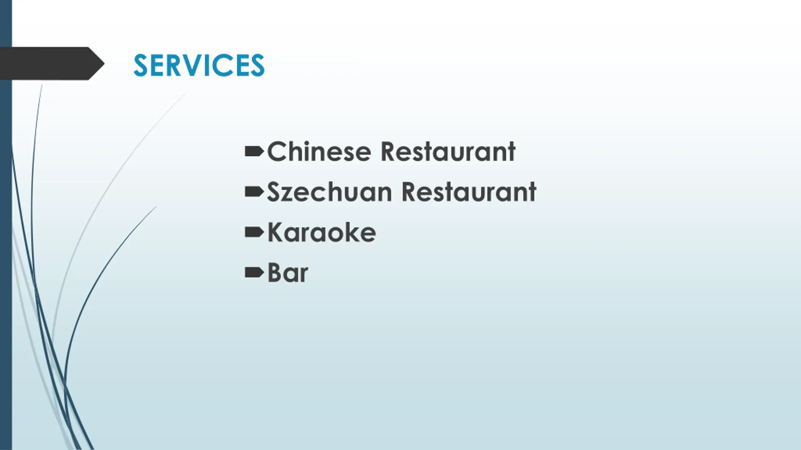 SERVICES Chinese Restaurant Szechuan Restaurant Karaoke Bar