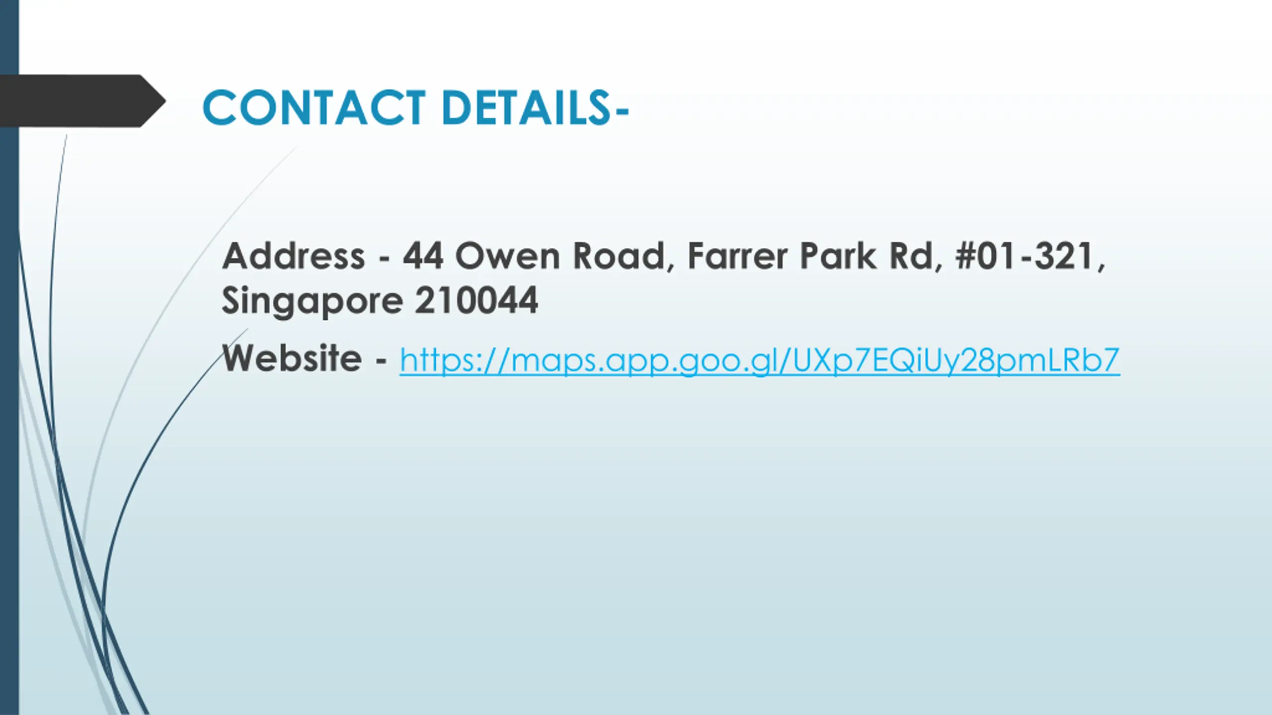 CONTACT DETAILS- Address - 44 Owen Road, Farrer Park Rd, #01-321, Singapore 210044 Website - https://maps.app.goo.gl/UXp7EQiUy28pmLRb7