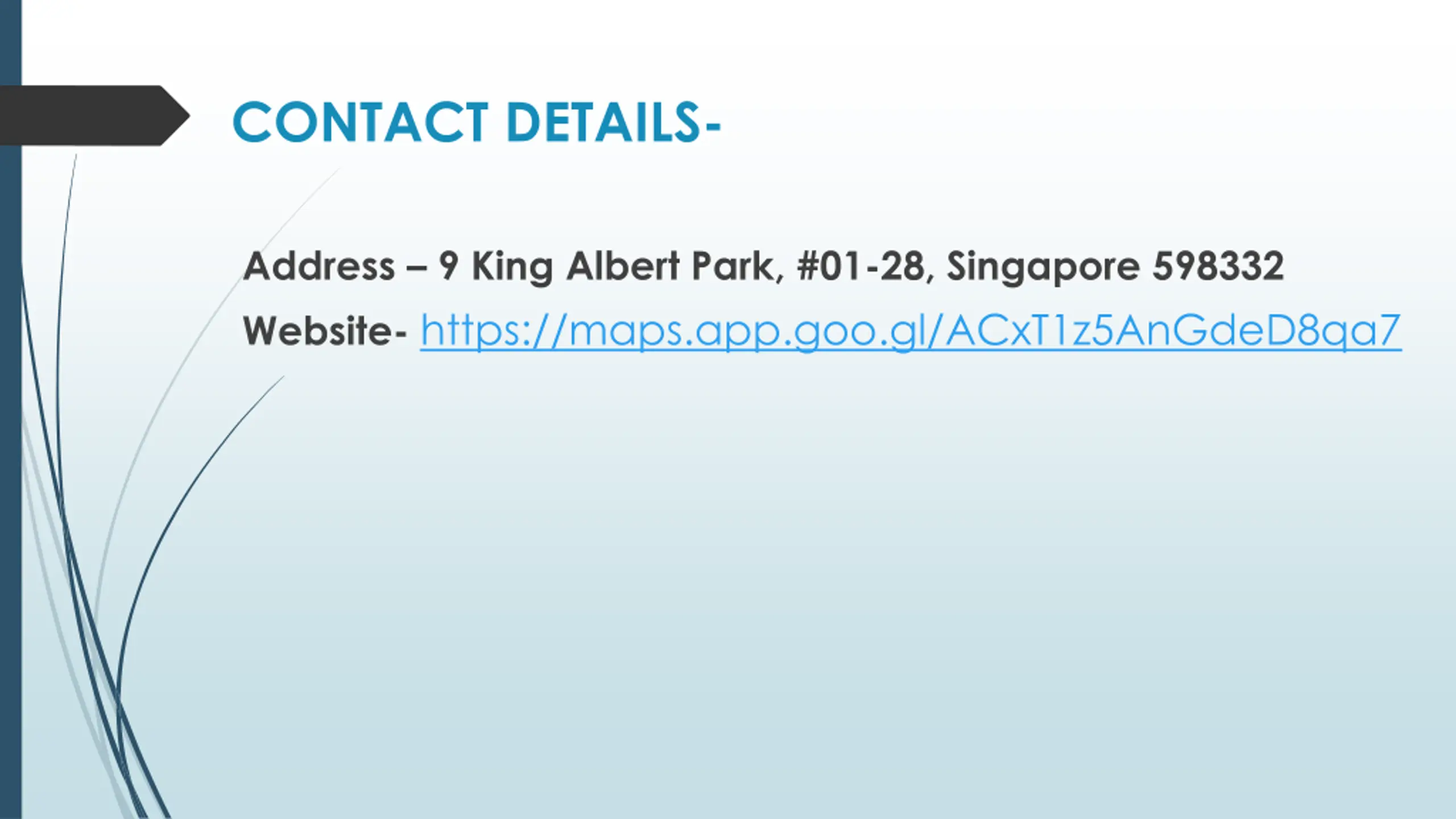 CONTACT DETAILS- Address 9 King Albert Park, #01-28, Singapore 598332 Website- https://maps.app.goo.gl/ACxT1z5AnGdeD8qa7