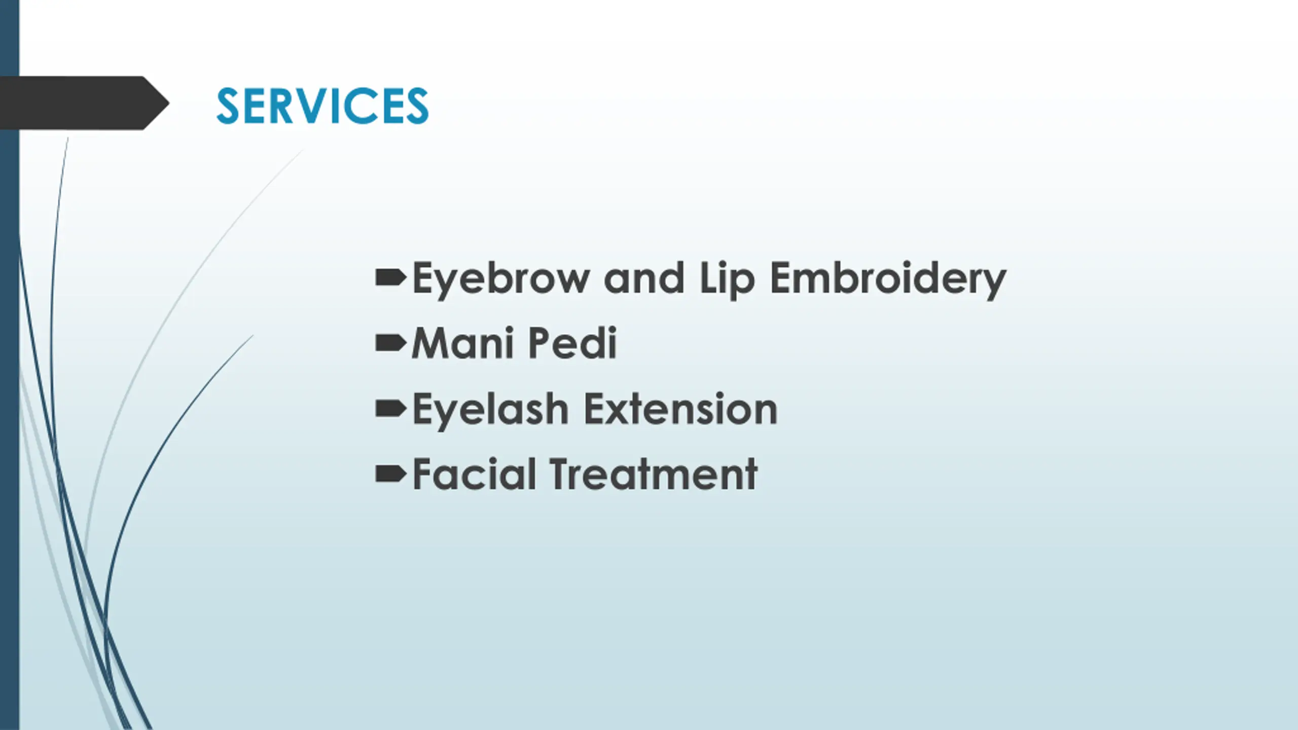 SERVICES Eyebrow and Lip Embroidery Mani Pedi Eyelash Extension Facial Treatment