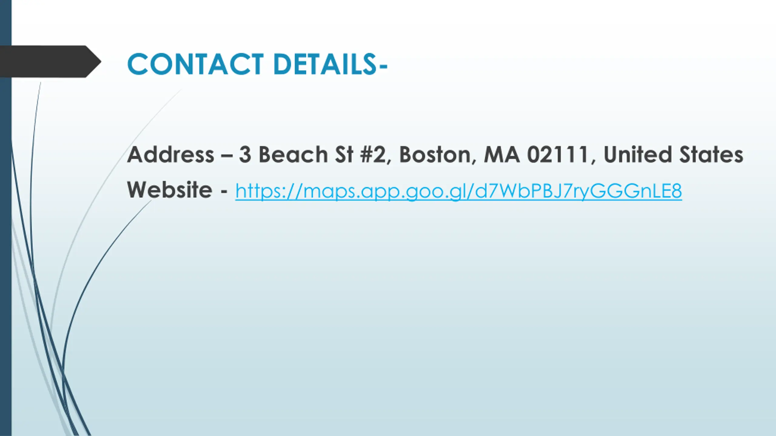 CONTACT DETAILS- Address 3 Beach St #2, Boston, MA 02111, United States Website - https://maps.app.goo.gl/d7WbPBJ7ryGGGnLE8