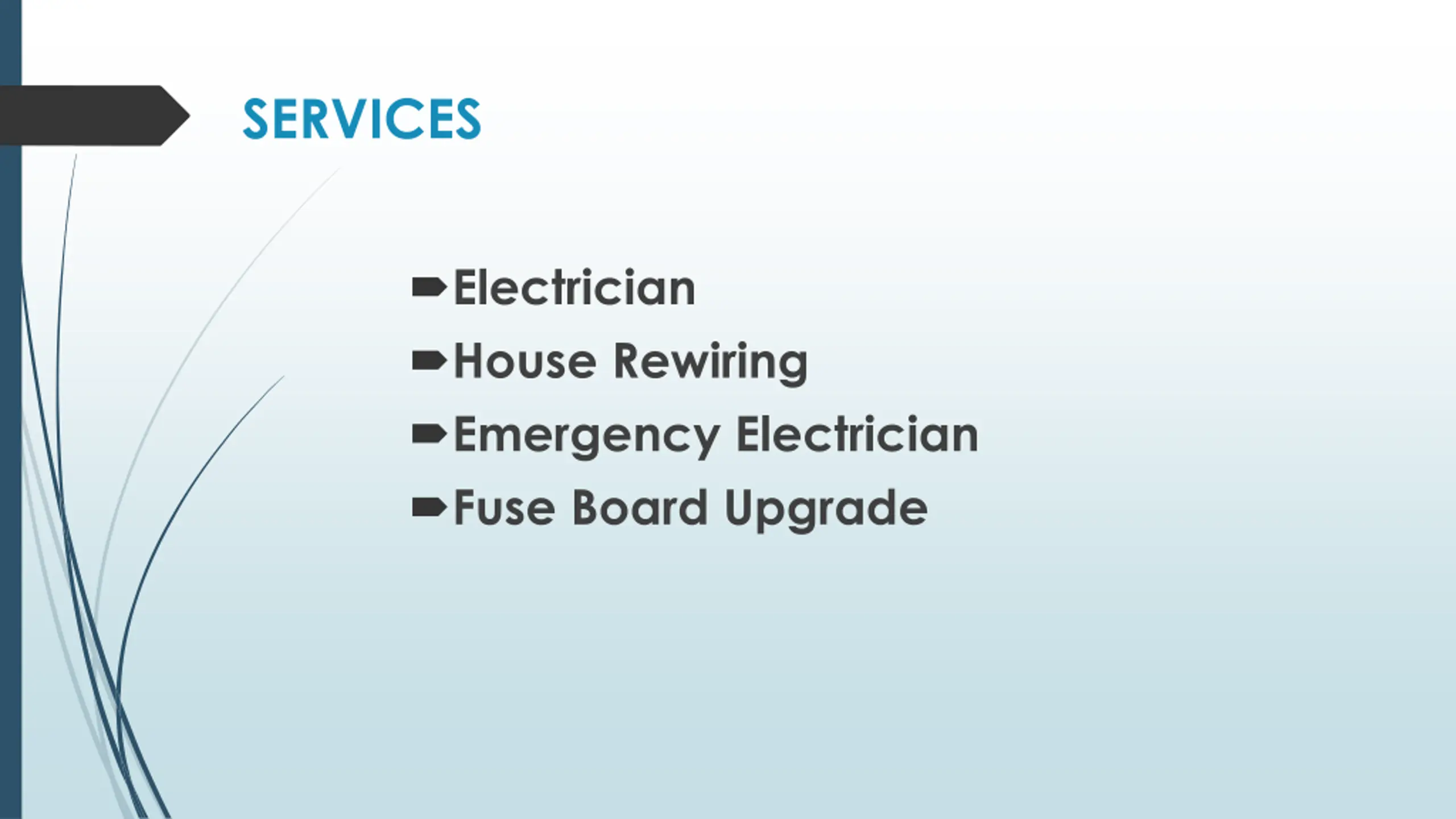 SERVICES Electrician House Rewiring Emergency Electrician Fuse Board Upgrade