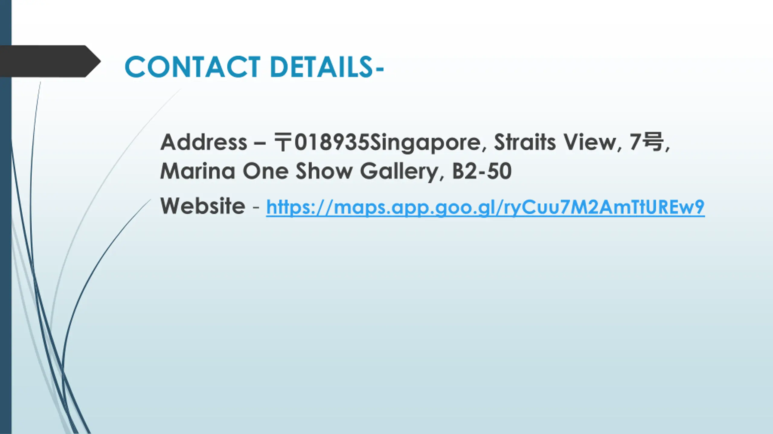 CONTACT DETAILS- 018935Singapore, Straits View, 7 , Address Marina One Show Gallery, B2-50 Website - https://maps.app.goo.gl/ryCuu7M2AmTtUREw9