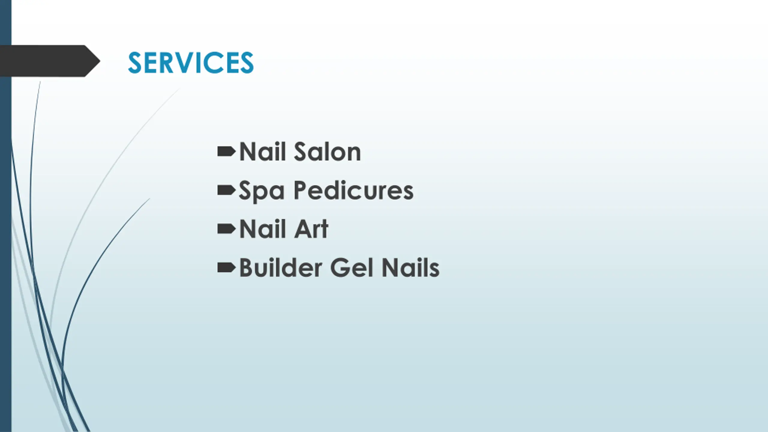 SERVICES Nail Salon Spa Pedicures Nail Art Builder Gel Nails