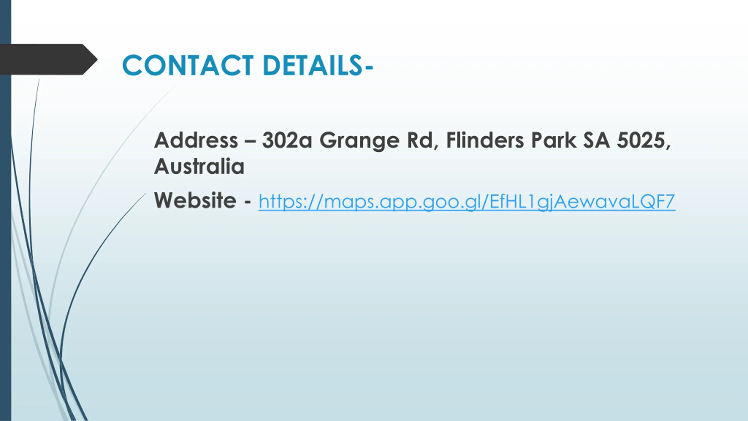 CONTACT DETAILS- Address 302a Grange Rd, Flinders Park SA 5025, Australia Website - https://maps.app.goo.gl/EfHL1gjAewavaLQF7