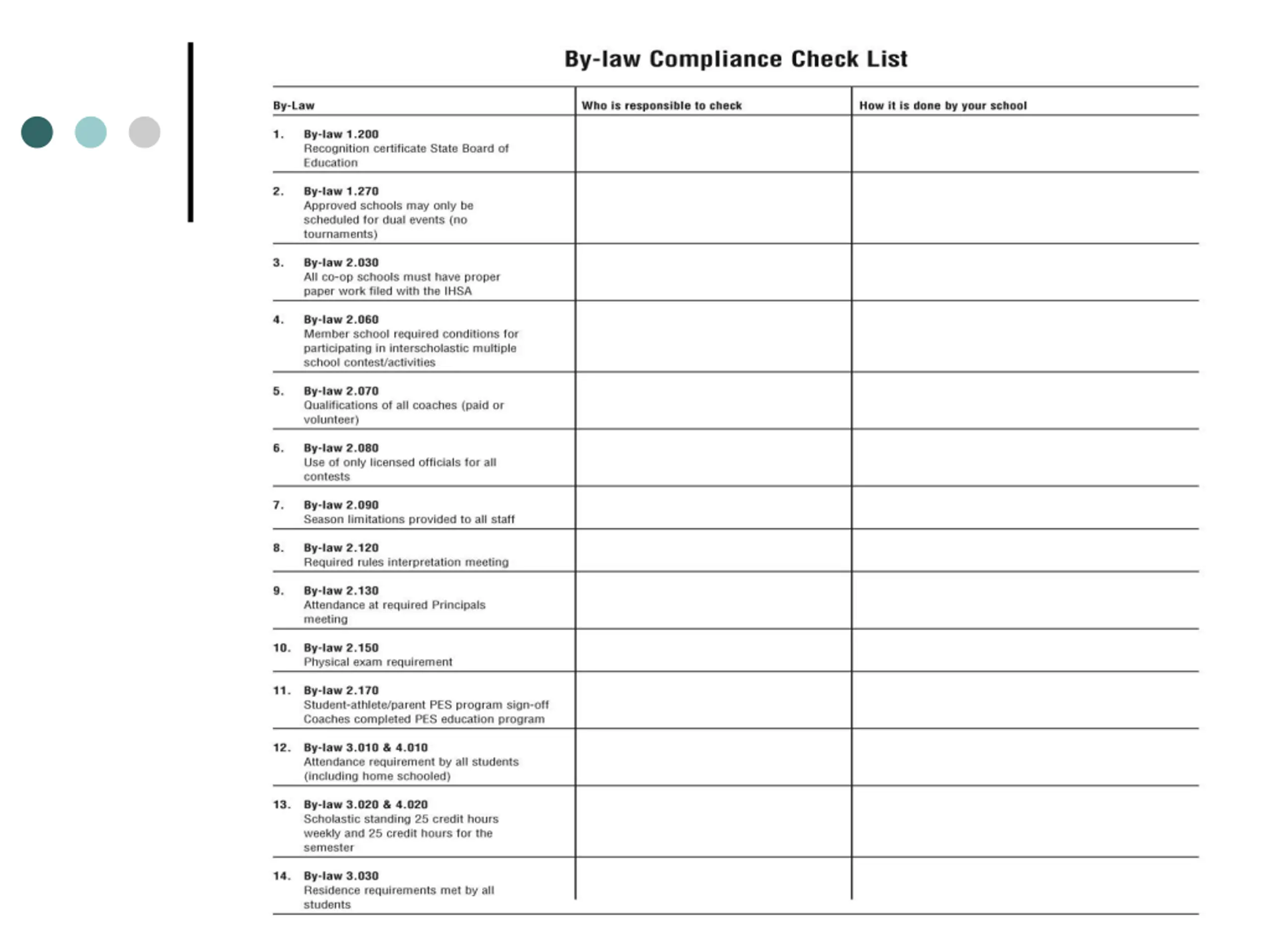 IHSA New Administrators Workshop Attendance Scholastic Standing Coaches Certification Tournament Assignments