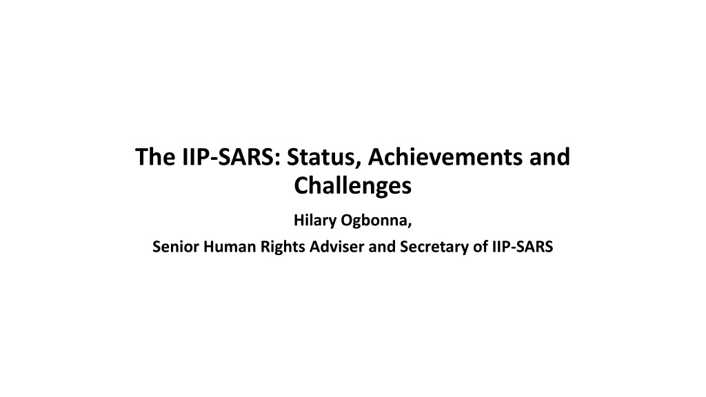 The IIP-SARS: Status, Achievements and Challenges Hilary Ogbonna, Senior Human Rights Adviser and Secretary of IIP-SARS