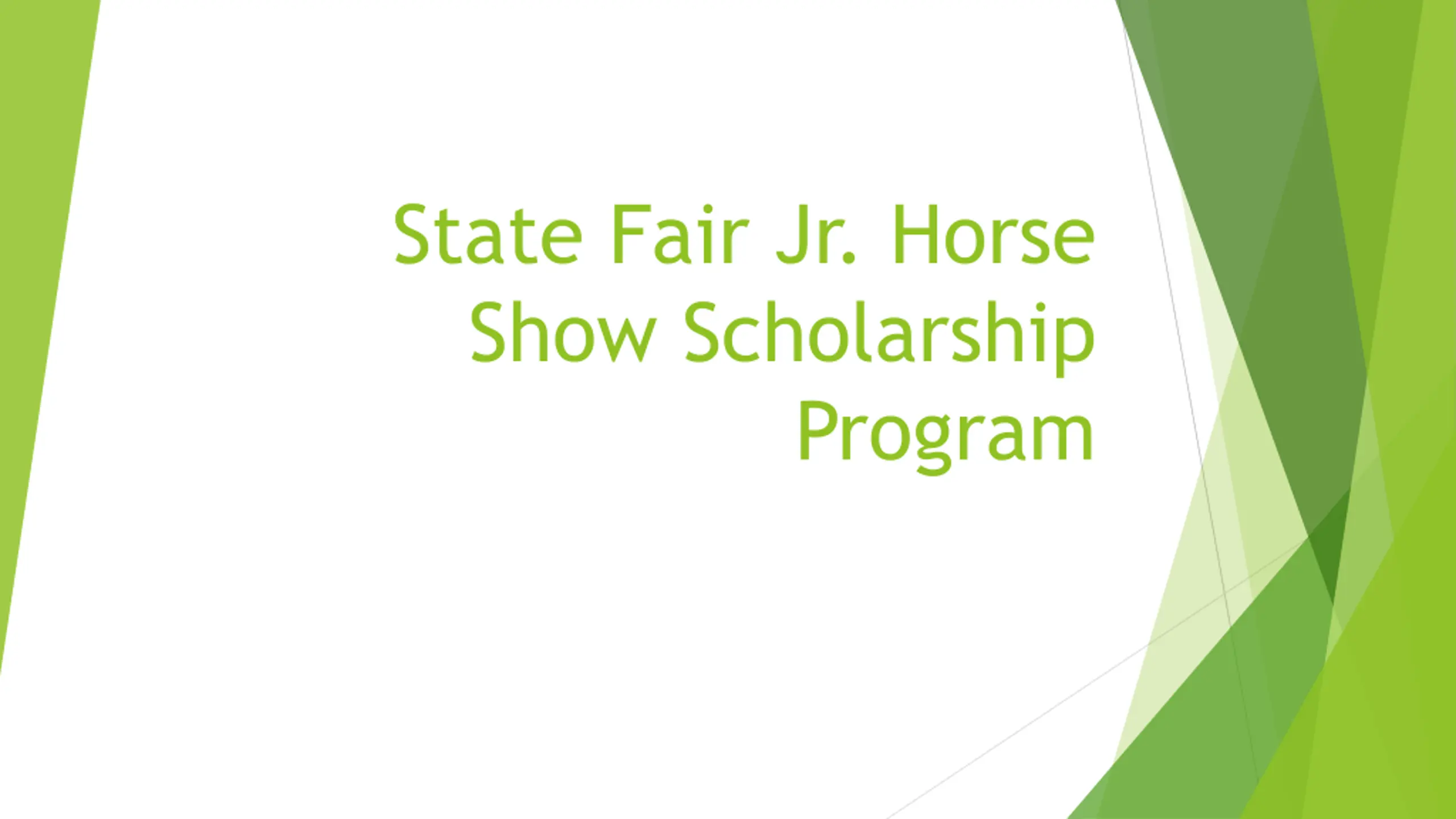 State 4-H Awards / Scholarships State Fair Jr. Horse Show Scholarship Program This scholarship application is open to currently enrolled 4-H and FFA members who are in their senior year of high school or freshman year of college AND who have exhibited at the State Fair Jr. Horse Show at least once within the past THREE years. Applications are in type-in .pdf format; hand-written applications will not be accepted. Application submissions must be postmarked by September 15 in order to be accepted for judging. Scholarship awards will vary in number and amounts depending upon total funds raised and number of applications. Note: This is NOT strictly a 4-H scholarship program (like our Legacy of Leadership and Livestock Scholarships), but one that is provided for both 4-H and FFA members by the volunteers and donors who support the State Fair Jr. Horse Show.