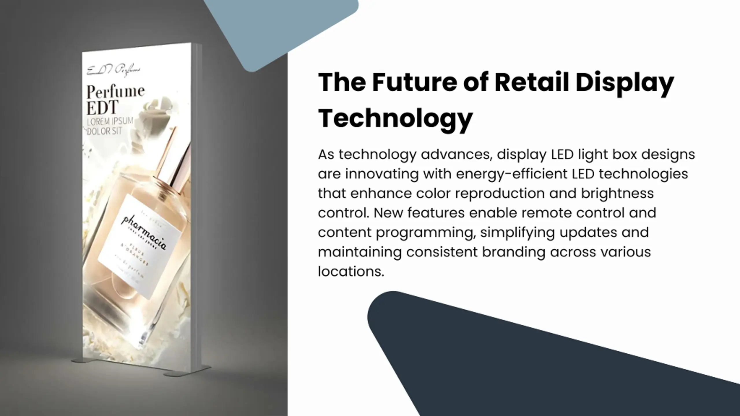 The Future of Retail Display Technology As technology advances, display LED light box designs are innovating with energy-efficient LED technologies that enhance color reproduction and brightness control. New features enable remote control and content programming, simplifying updates and maintaining consistent branding across various locations.