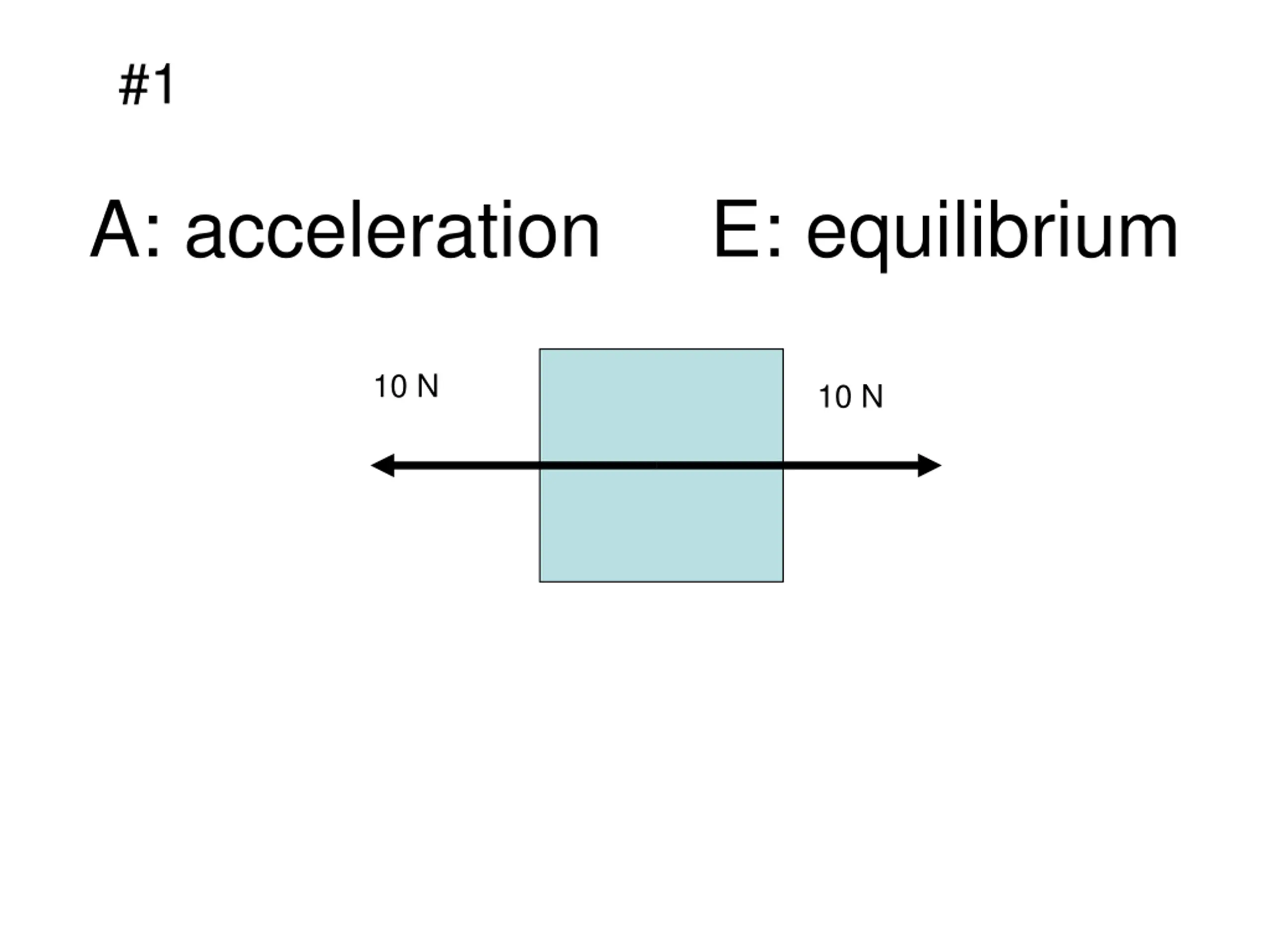 A: acceleration E: equilibrium Determine whether the following diagrams illustrate acceleration or equilibrium. Number your paper from 1 to 5 and answer A if you think it is showing acceleration or E if you think it is showing equilibrium