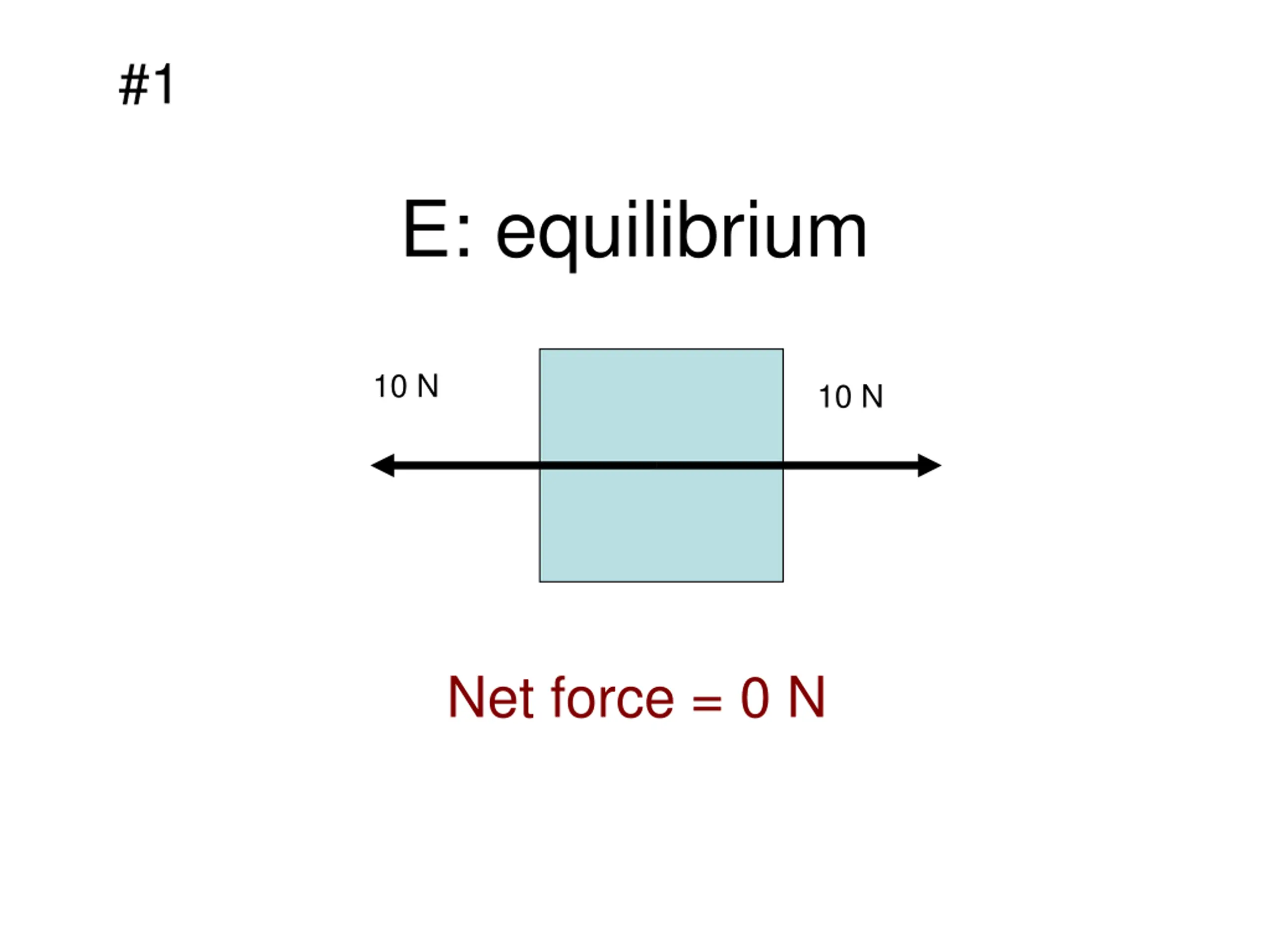 #1 E: equilibrium 10 N 10 N Net force = 0 N