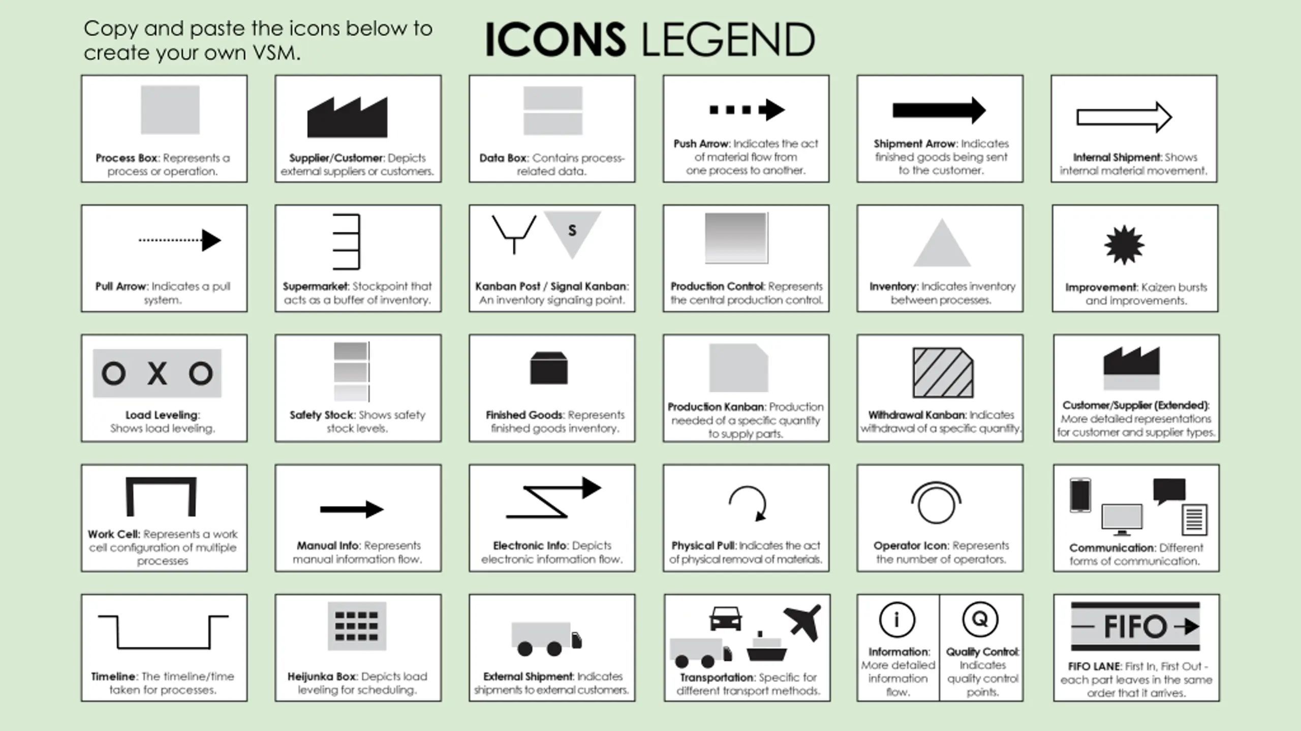 Value Stream Current State Map To create your own VSM, copy and paste icons from the VSM Icons on Slide 6.