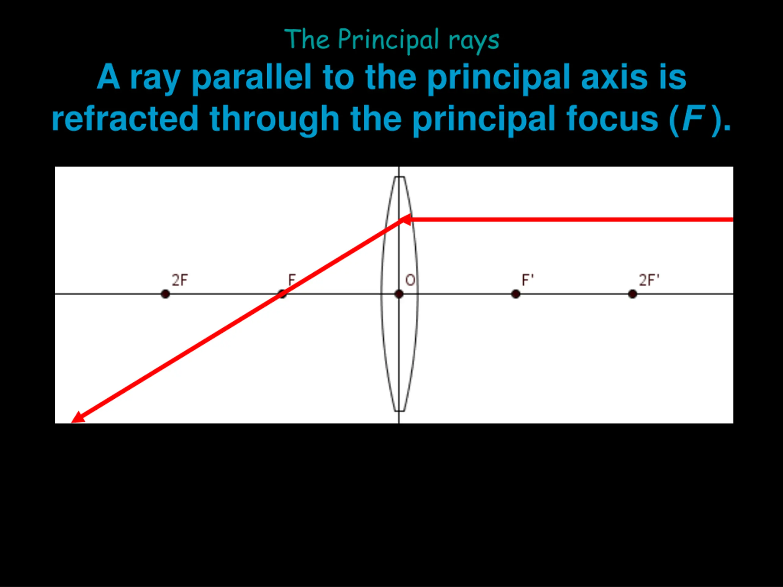 The Principal rays A ray parallel to the principal axis is refracted through the principal focus (F ).