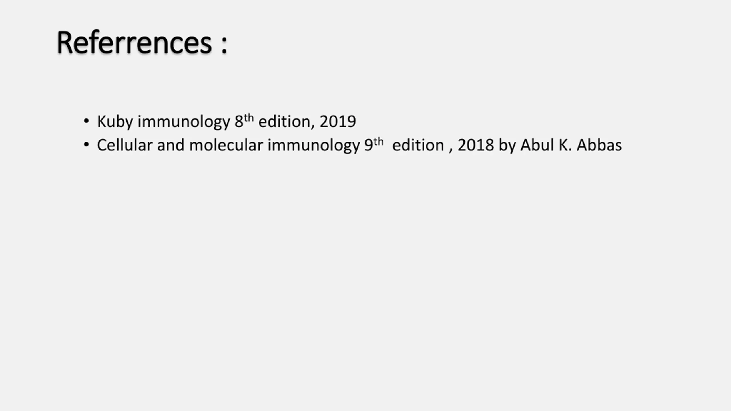 Referrences Referrences : : Kuby immunology 8th edition, 2019 Cellular and molecular immunology 9th edition , 2018 by Abul K. Abbas