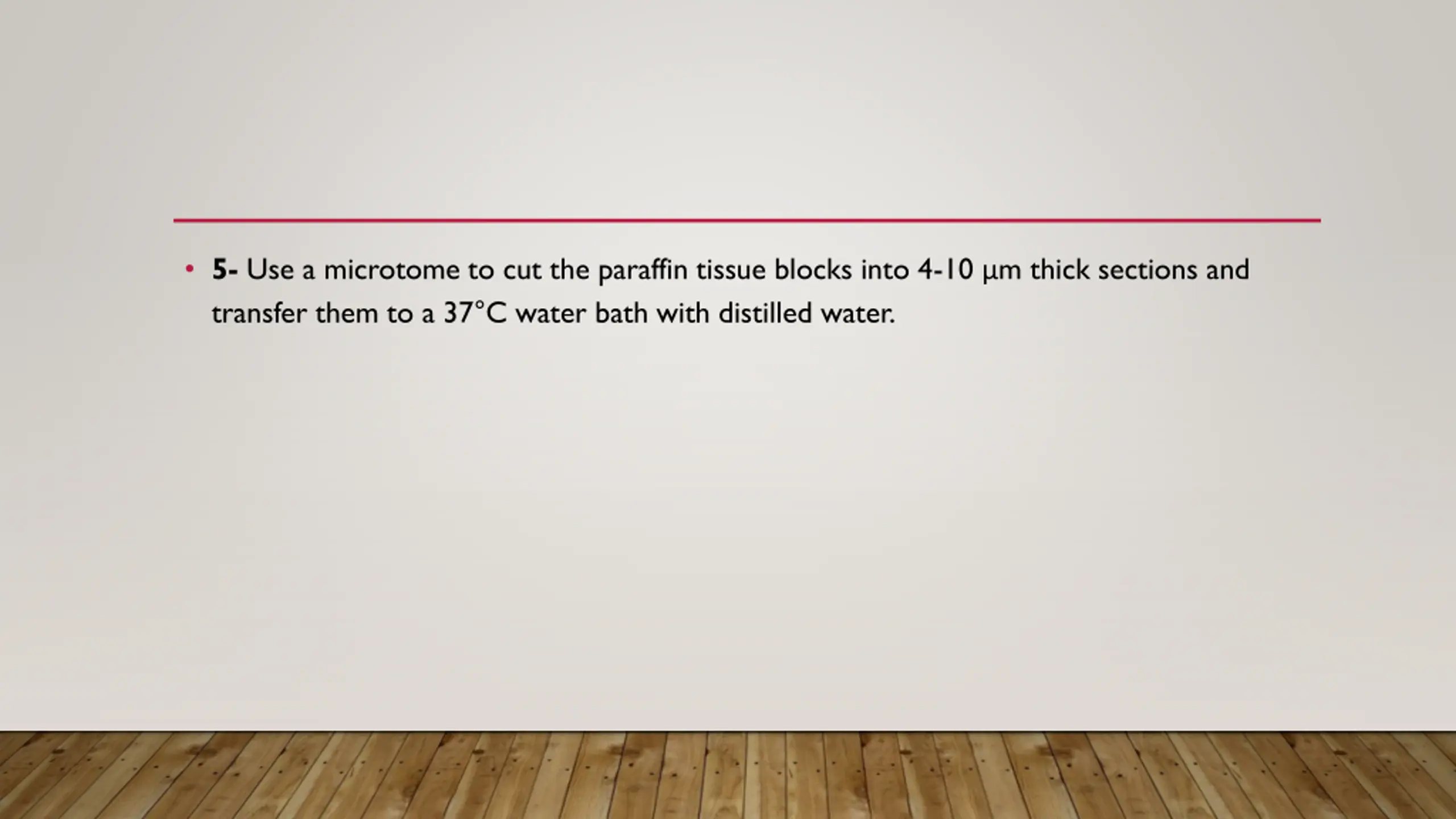 5- Use a microtome to cut the paraffin tissue blocks into 4-10 m thick sections and transfer them to a 37 C water bath with distilled water.