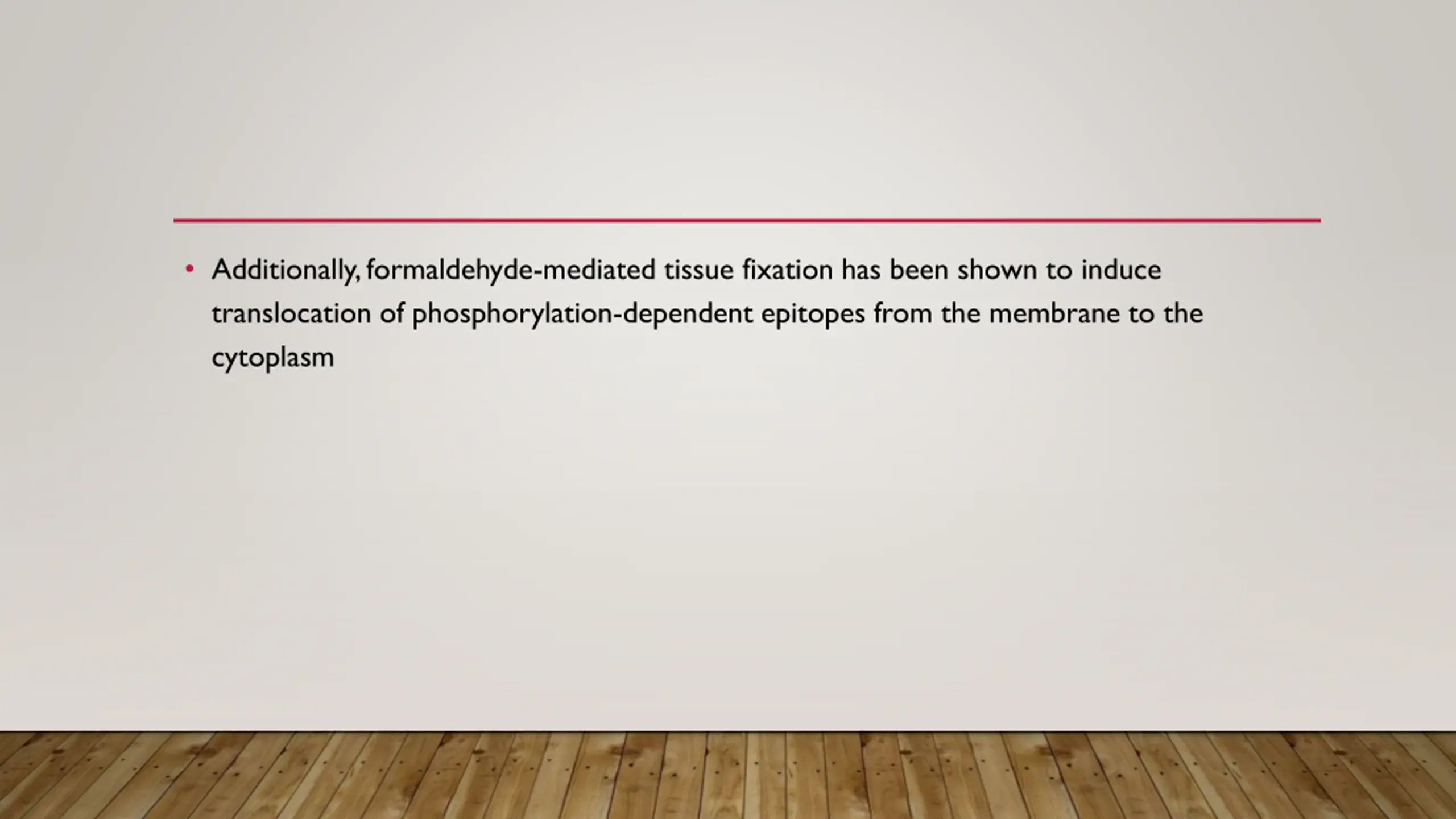 Additionally, formaldehyde-mediated tissue fixation has been shown to induce translocation of phosphorylation-dependent epitopes from the membrane to the cytoplasm