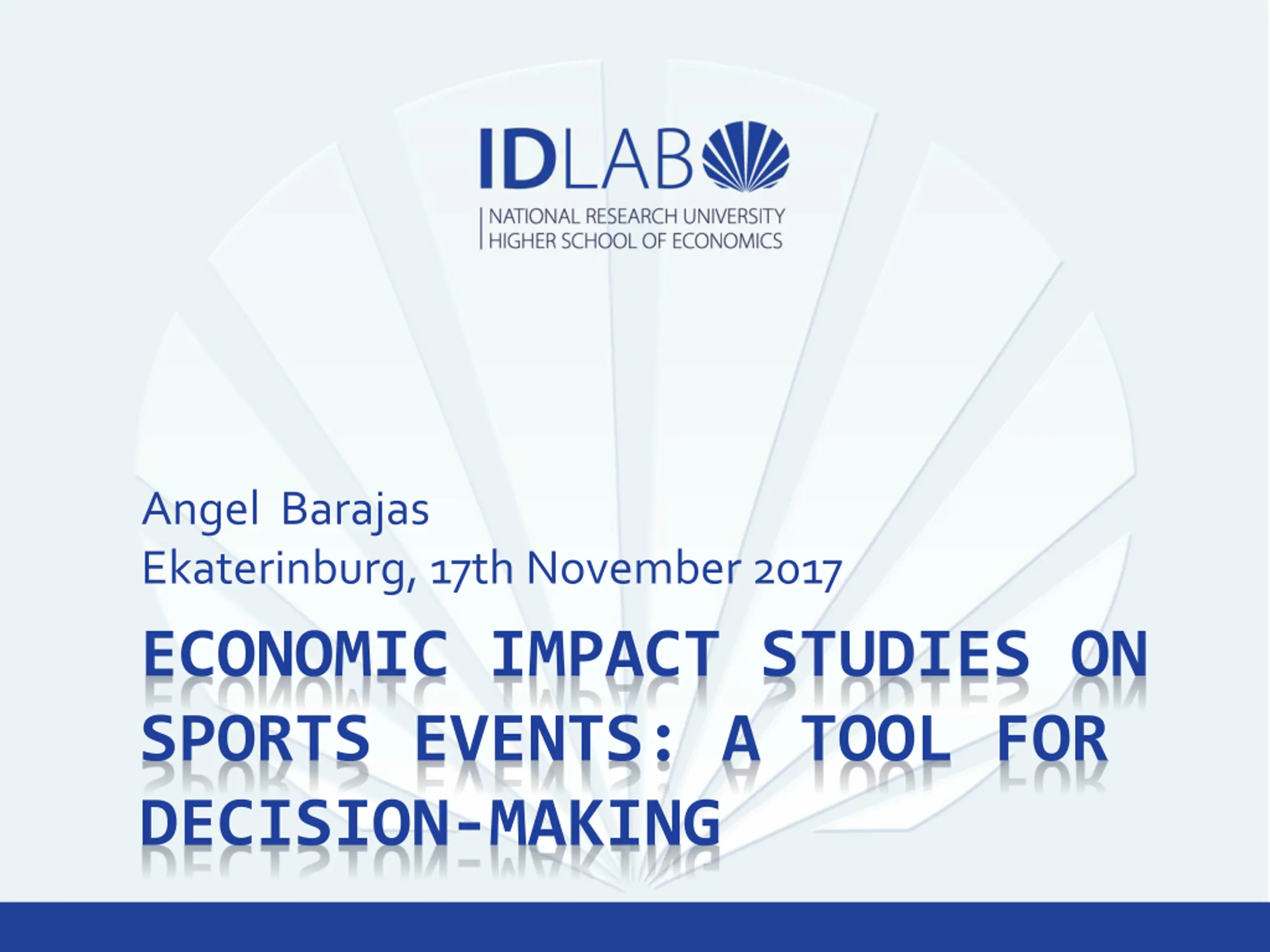 Angel Barajas Ekaterinburg, 17th November 2017 ECONOMIC IMPACT STUDIES ON SPORTS EVENTS: A TOOL FOR DECISION-MAKING